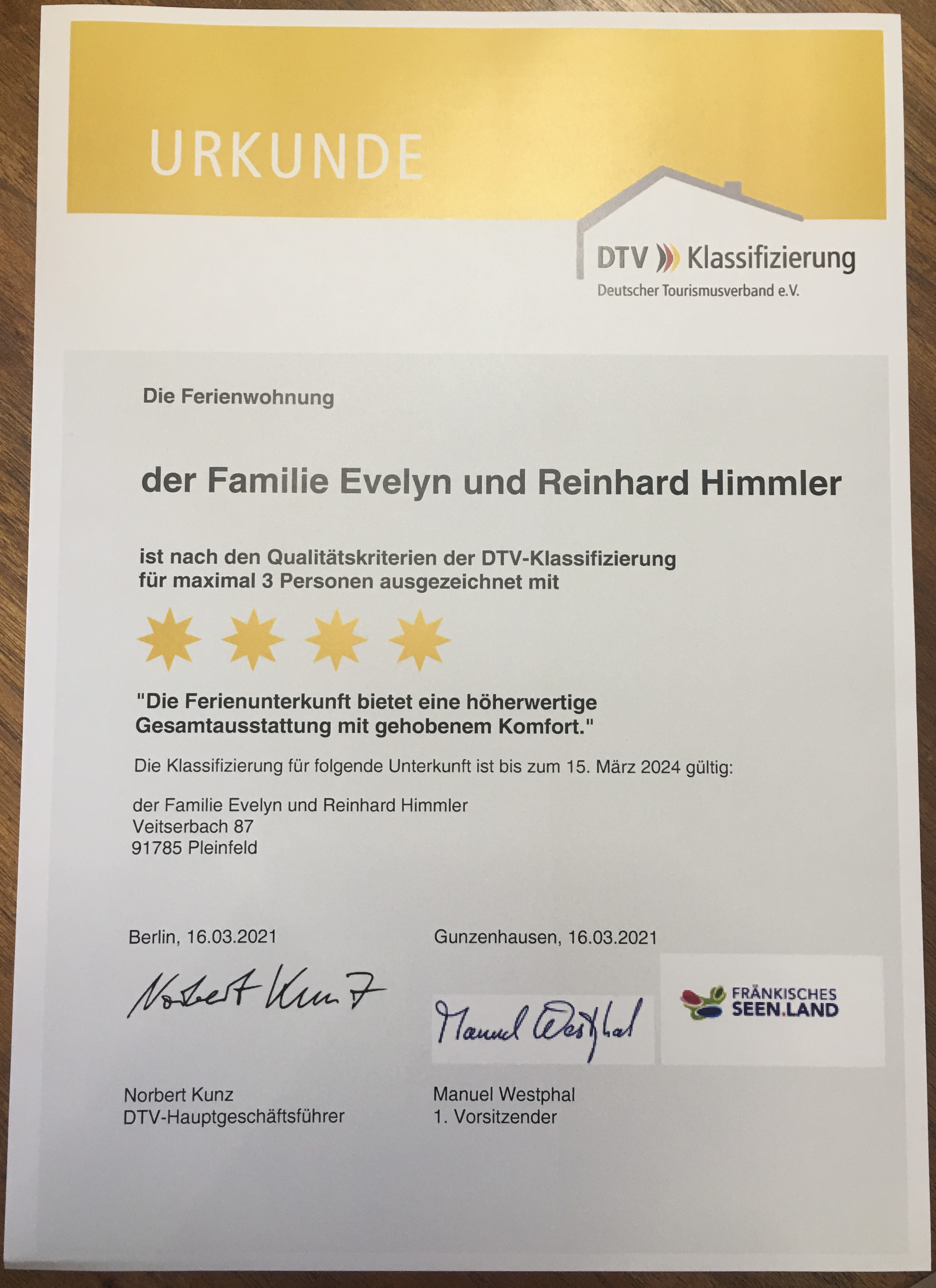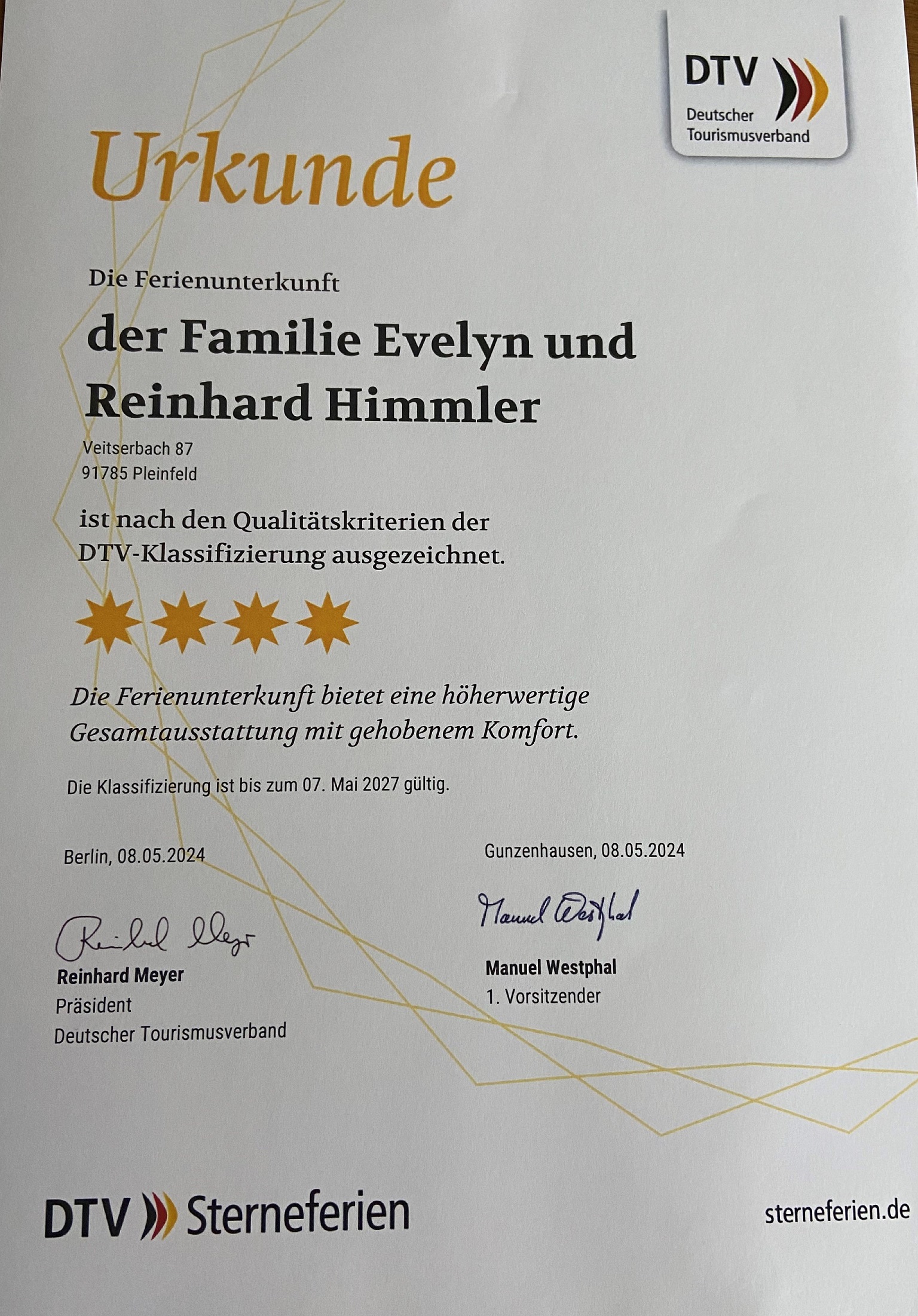 Bitte teilen Sie der Unterkunft Ihre voraussichtl. Ankunftszeit im Voraus mit!