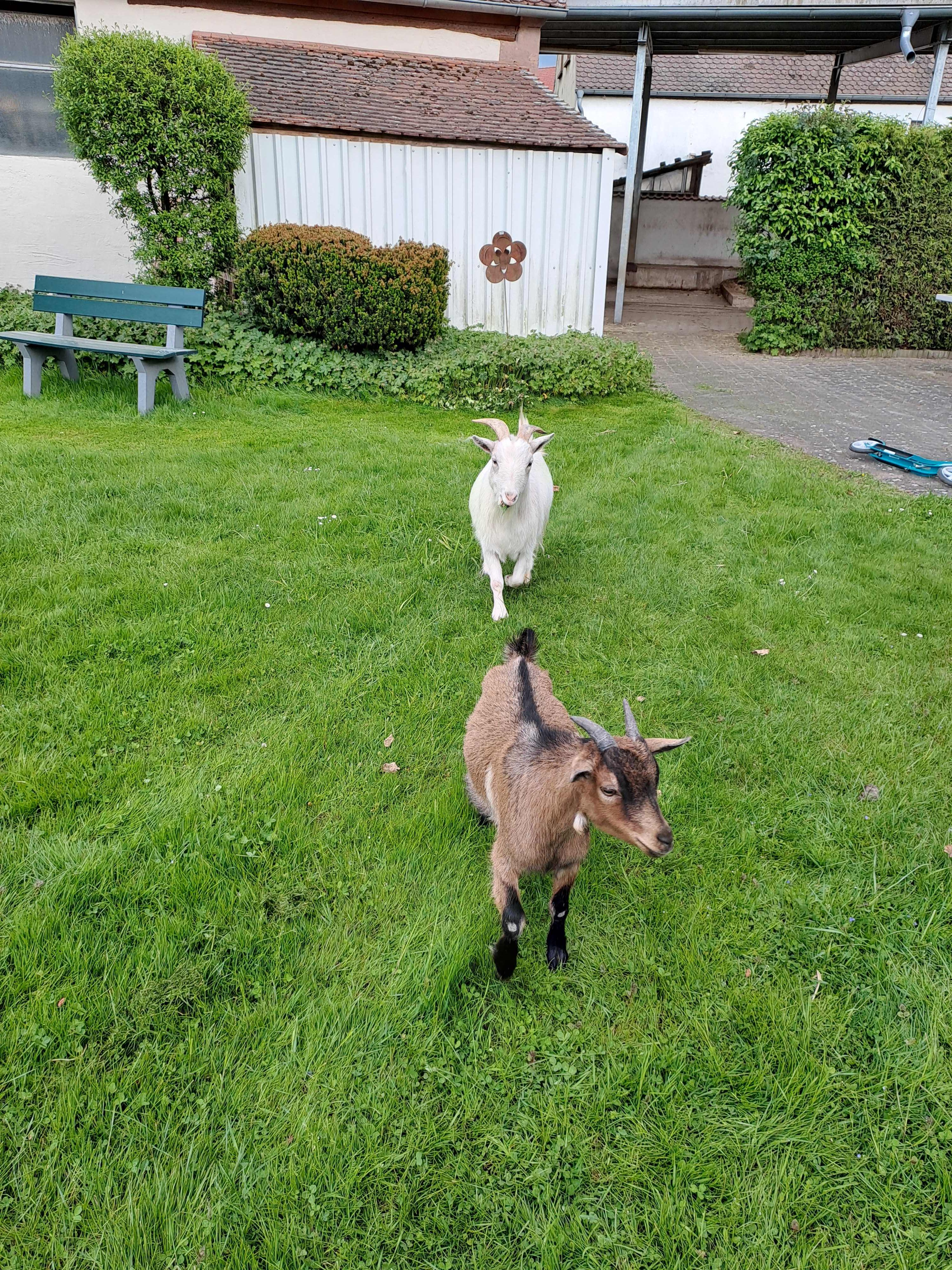 Bei uns ist tierisch was los. Unsere Ponys, Ziegen, Hasen und Katzen freuen sich auf unsere kleinen Gäste.