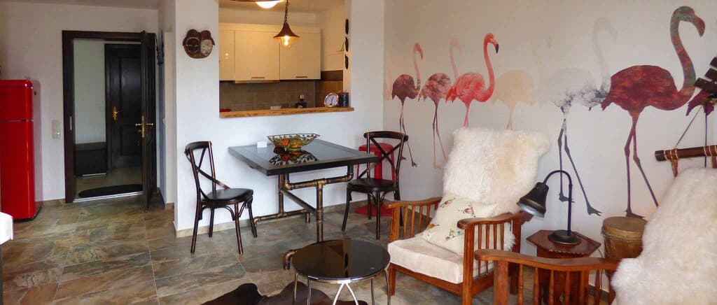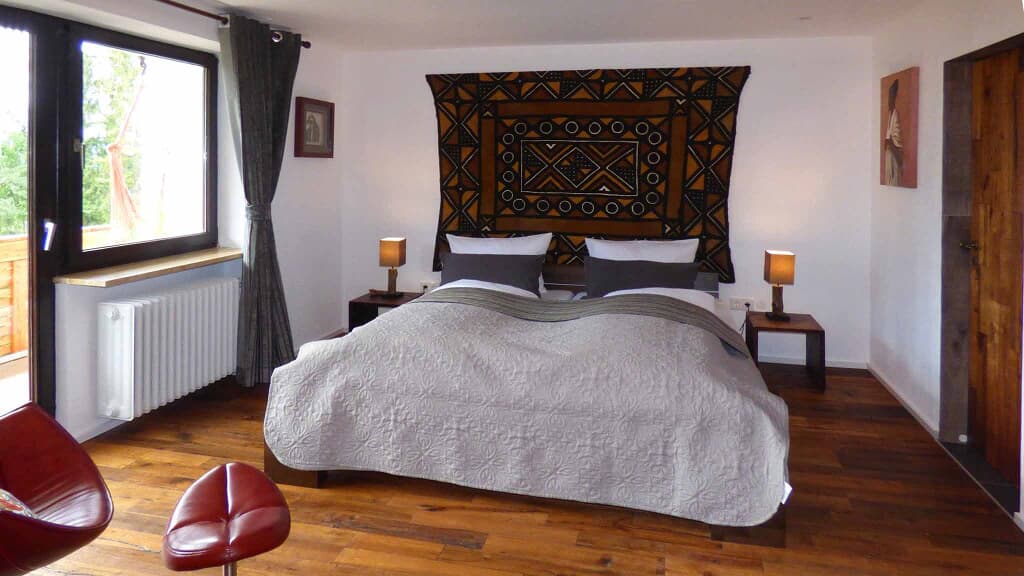 Liberia, Kamerun, Burkina Faso: wo ist das denn? Da sitzen Sie in Afrika, mitten im Bayerischen Wald! Die Ferienwohnung bietet trotzdem alle moderne Einrichtungen, die das Leben gemütlich machen. Ein grosses Bett, eine Sitzecke, eine voll eingerichtete Küche mit großem Kühlschrank, ein Balkon mit Tisch , jetzt kann man entspannen. Und die Makis -Pardon, Eichhörnchen- springen in den Bäumen. Da bekommt man Lust auf eine Tajine, oder ein Couscous Royal?