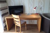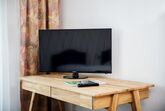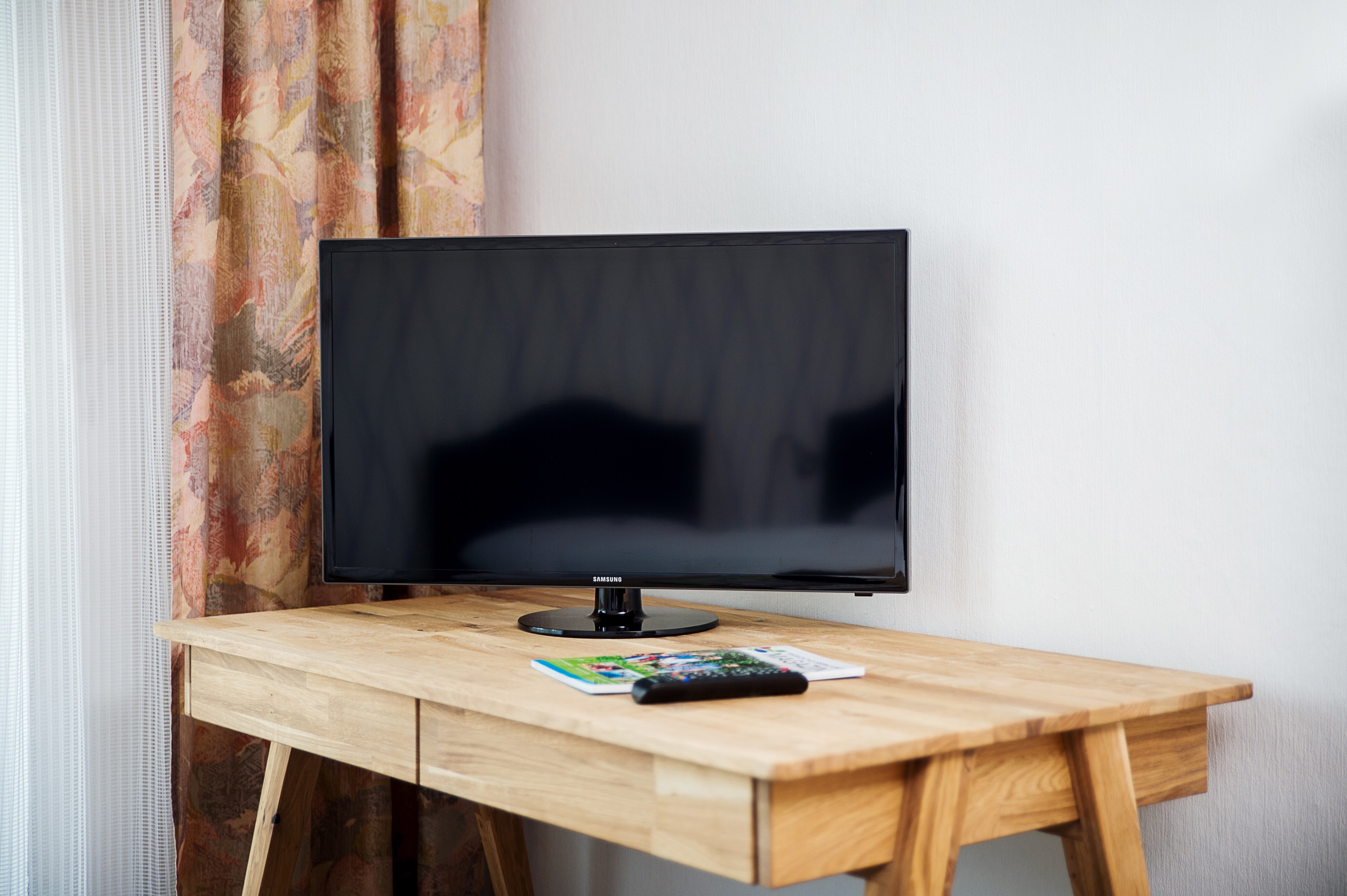 Das Bad ist mit WC und Dusche ausgestattet, des Weiteren sind Fernseher, Föhn und freies WLAN auf dem Zimmer inklusive.