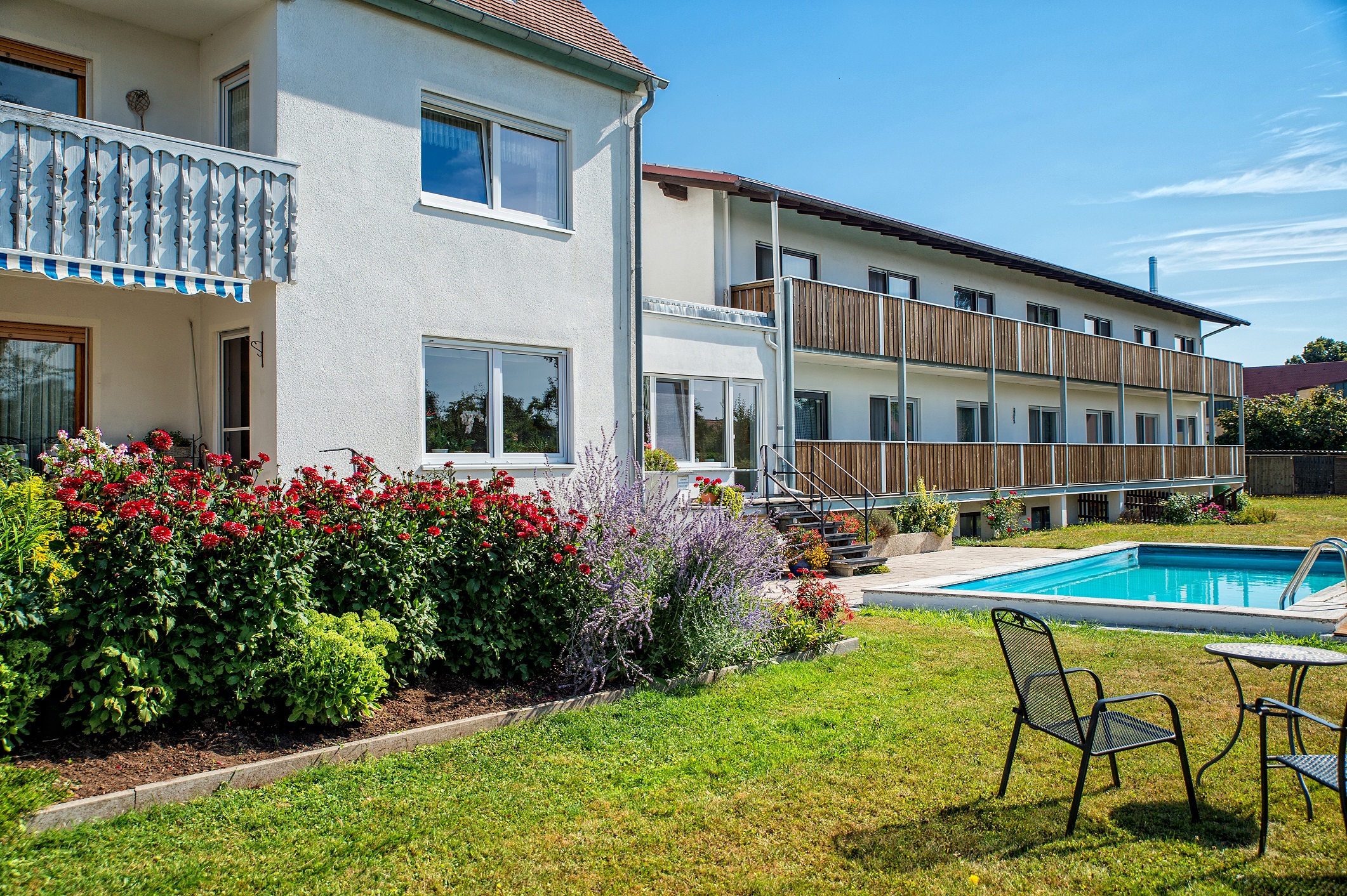 Unser familiär geführtes Haus liegt in einem ruhigen Garten, nur ein paar Gehminuten von der Altstadt entfernt. Das Hotel wurde um 1970 gebaut und verfügt über 18 Zimmer, jeweils ausgestattet mit Dusche und WC, Fernseher und kostenlosem WLAN, zudem haben fast alle Zimmer einen Balkon zur südlichen Gartenseite hin. Ein regional geprägtes Frühstück gibt es in zwei gemütliche Gasträumen.