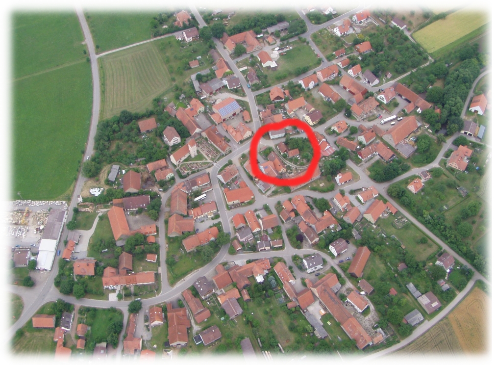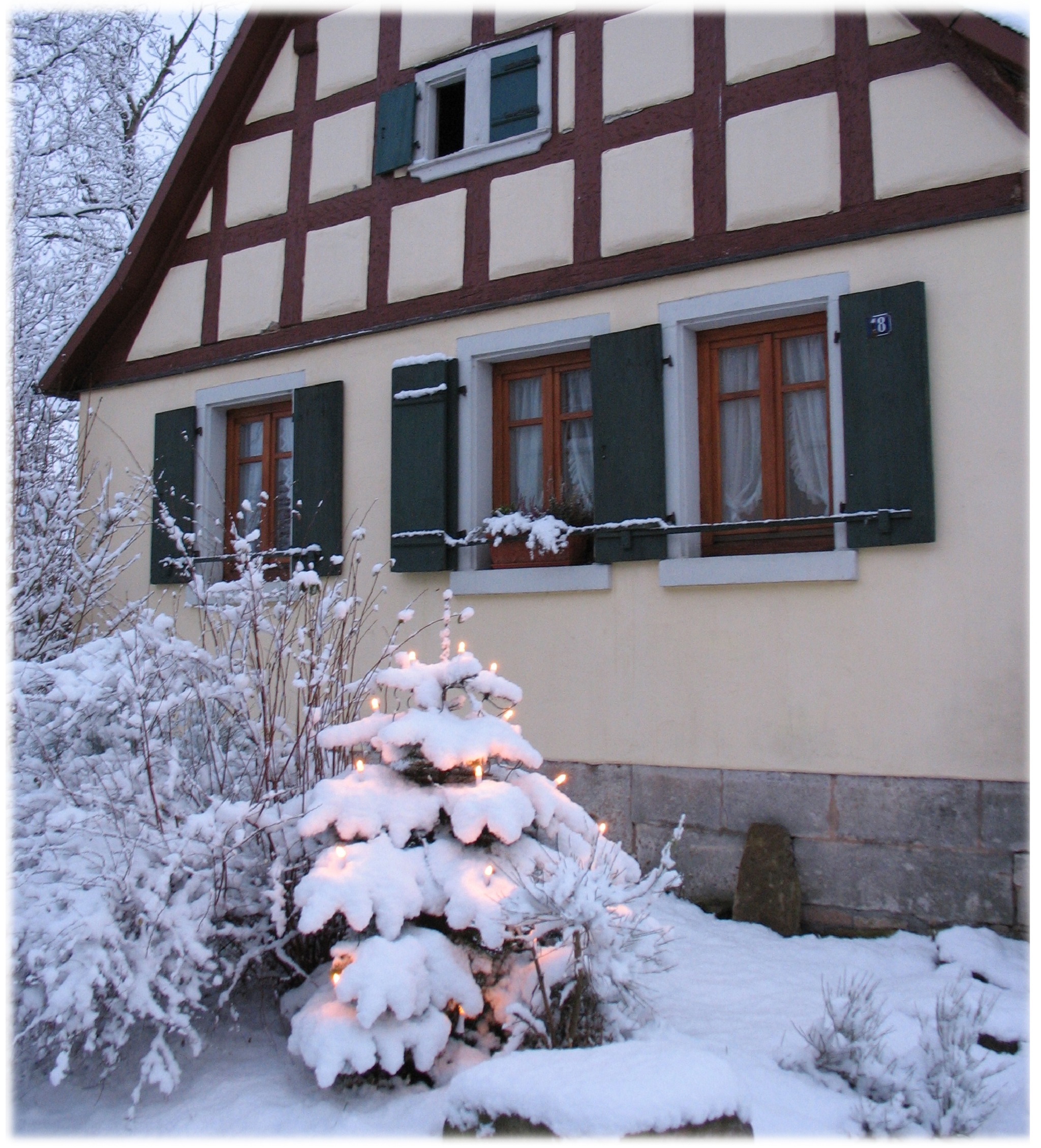 Restauriertes Bauernhäuschen im Zentrum von Schweinsdorf, einem kleinen typisch fränkischen 450 Einwohner-Dorf 4km von Rothenburg o/T.