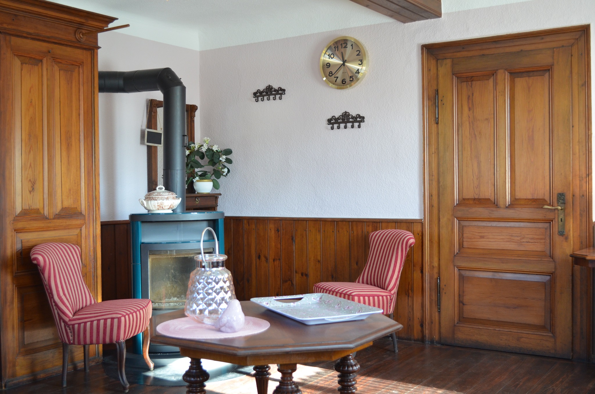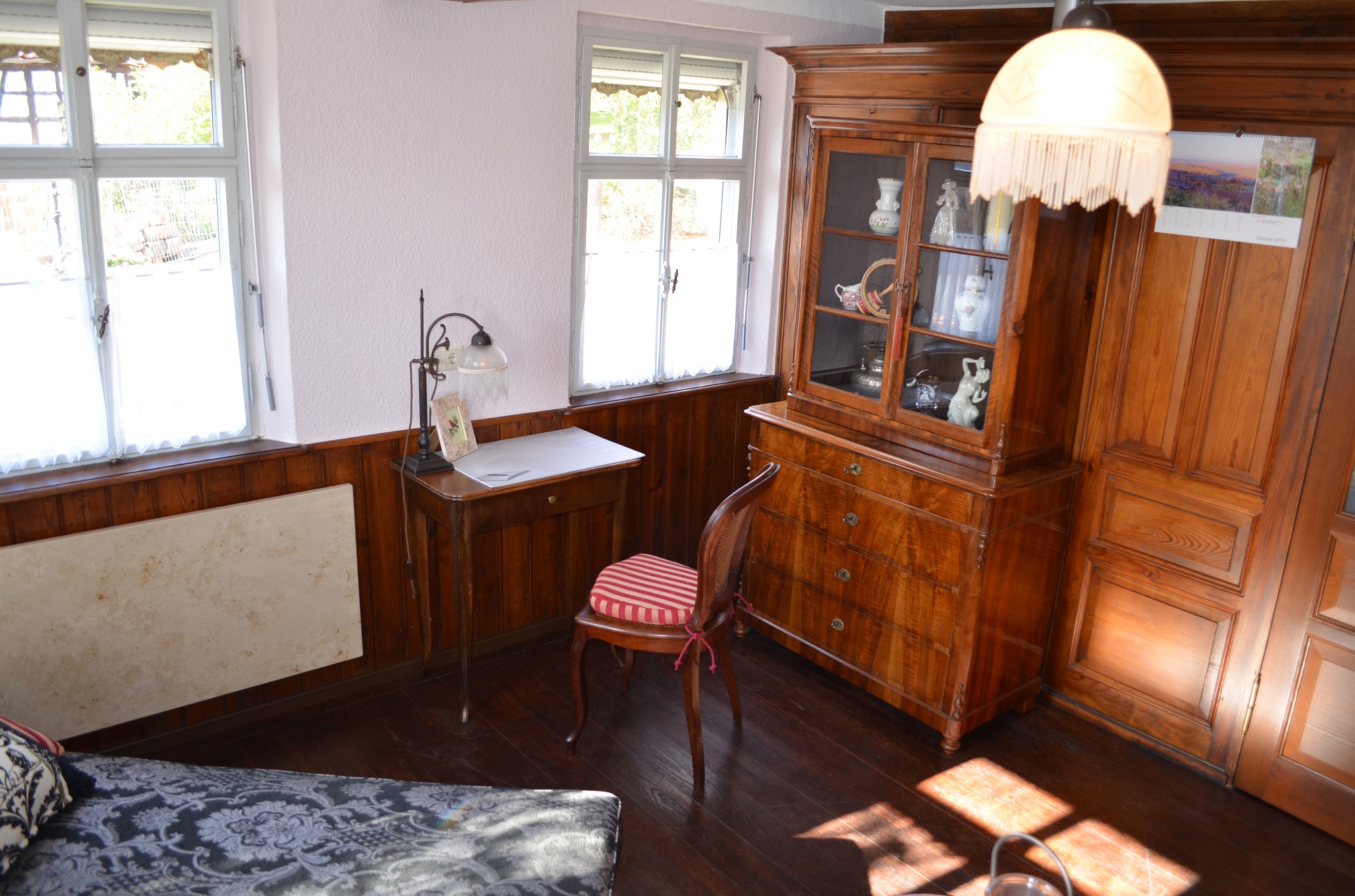 Suite Merzbach Erdgeschoß links: Nichtraucher, keine Haustiere. Heiter helle Atmosphäre in hinreißend eingerichteter Suite, im Haus aus dem 19. Jahrhundert, im dörflichen Ortskern. Schlafzimmer mit Boxspring-Doppelbett, historisch eingerichtetes Wohnzimmer. Duschbad im EG separat mit WC, Waschbecken, Waschmaschine, Fön, Kosmetikspiegel, Bademäntel, Handtücher. Die Wohnung ist außerdem mit einem Ventilator ausgestattet. Größe der Suite 37,7qm, separates Bad 4,47 qm. Vollwertige Landhausküche nebenan im EG (9,5qm), gemeinsam mit Gästen der gegenüberliegenden Suite nutzbar. Geeignet für Geschäftsreisende, Wanderer, Pilger, Radreisende, Erwachsene, Kinder willkommen, Bäcker, Dorfladen, Poststelle, Blumenladen, Rathaus, Kirche, Saal Gaststätte, Pizzeria/ Catering-Service sehr nahe bei. Babybett vorhanden.Die Küchennutzung ist grundsätzlich im Preis enthalten. Die Nichtbenutzung der Küche kann vom Preis nicht abgezogen werden.Ein kontinentales Frühstück ist im Preis inbegriffen. Kinder willkommen. Babybett vorhanden. Ottomane zum Schlafen für Kinder bis 12Jahre nutzbar.