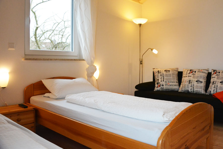Die Ferienwohnung 12 befindet sich im 1. OG  der Doppelhaushälfte in der Tulpenstraße 12, 90513 Zirndorf-Lind. Sie hat eine Größe von 65 qm und ist für max. 5 Personen geeignet. Sie wurde 2015 komplett neu gebaut und wird von privat vermietet. Ausstattung: Zwei Schlafzimmer mit je zwei Betten, individuell stell bar (Doppelbett oder Einzelbetten), SAT/TV und W-LAN. Zusätzliche Schlafcouch für die fünfte Person in einem Schlafzimmer.  Eine voll ausgestattete Wohnküche lädt zum Verweilen ein. Bad mit Dusche und WC. Balkon mit Blick in den Garten. Nichtraucherwohnung, Haustiere nicht erlaubt.