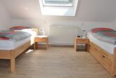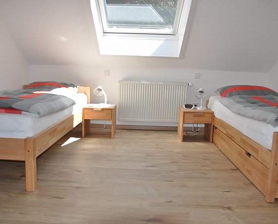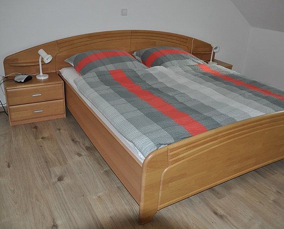 Ein Schlafzimmer ist mit einem Doppelbett ausgestattet und im anderen Schlafzimmer befinden sich zwei Einzelbetten. Die Betten sind bei Ihrer Ankunft bereits bezogen.