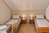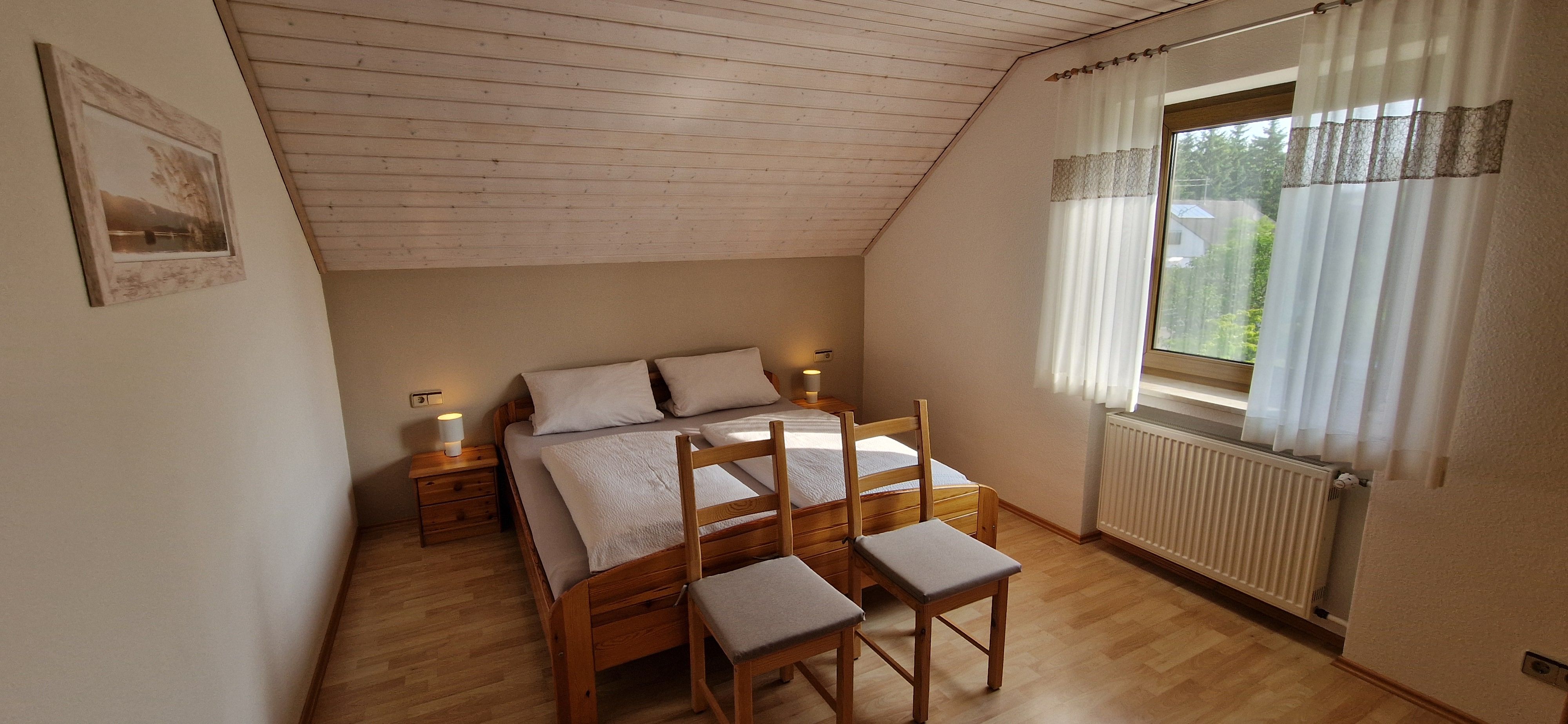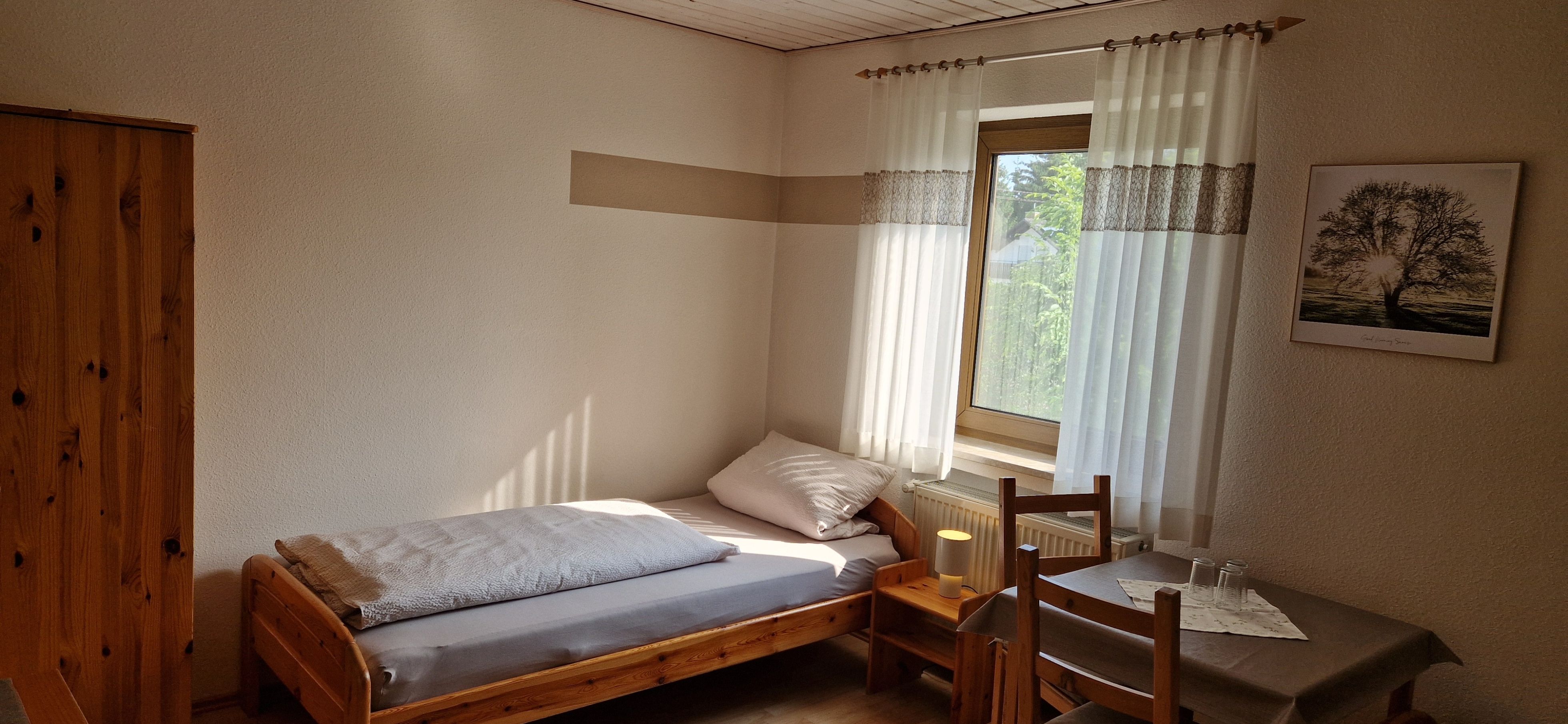 Das 2-Bett-Zimmer (15qm) mit Doppelbett hat Platz für ein Kinderbett, das auf Wunsch von uns bereitgestellt wird. Im 3-Bett-Zimmer (17qm) befinden sich 3 Einzelbetten für Groß und Klein.