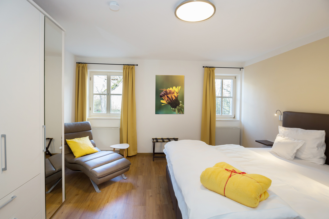 Richtig modern wohnen Sie in unserer Löwenzahnwohnung im historischen Bauernhaus. 75 qm Wohnfläche im Erdgeschoss bieten Ihnen jede Menge Platz für einen erholsamen Urlaub. Die Wohnung ist für bis zu 4 Personen bestens geeignet und verfügt auch über ein separates Kinderzimmer. Genießen Sie auf der sonnigen Terrasse den Duft des blühenden Lavendels. Ihre Kinder oder Enkel gehen von der Terrasse direkt auf unseren großen Spielplatz auf Entdeckungstour. Die moderne und hochwertige Ausstattung der Wohnung garantiert Ihnen einen F****-Sterne-Komfort (DTV).