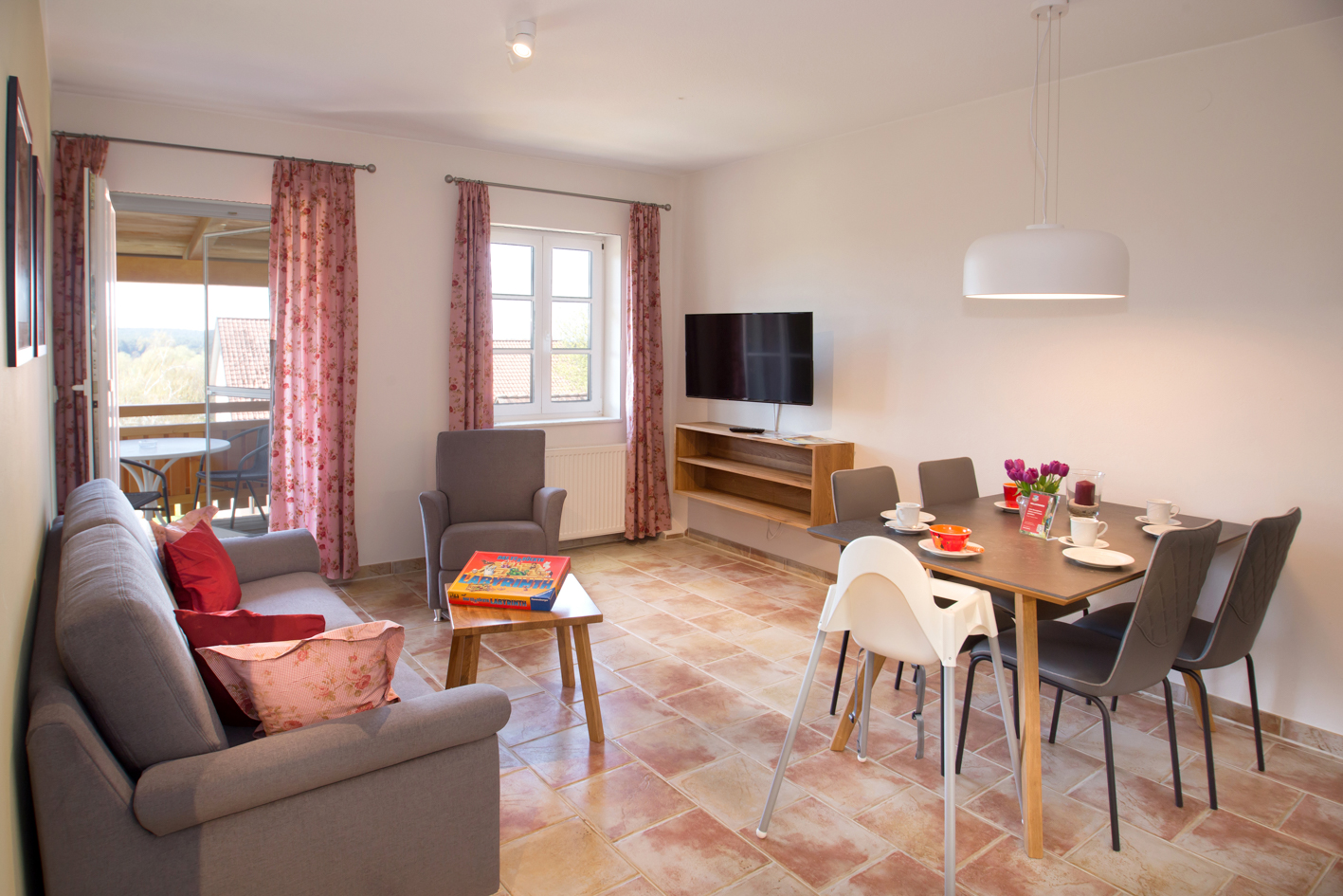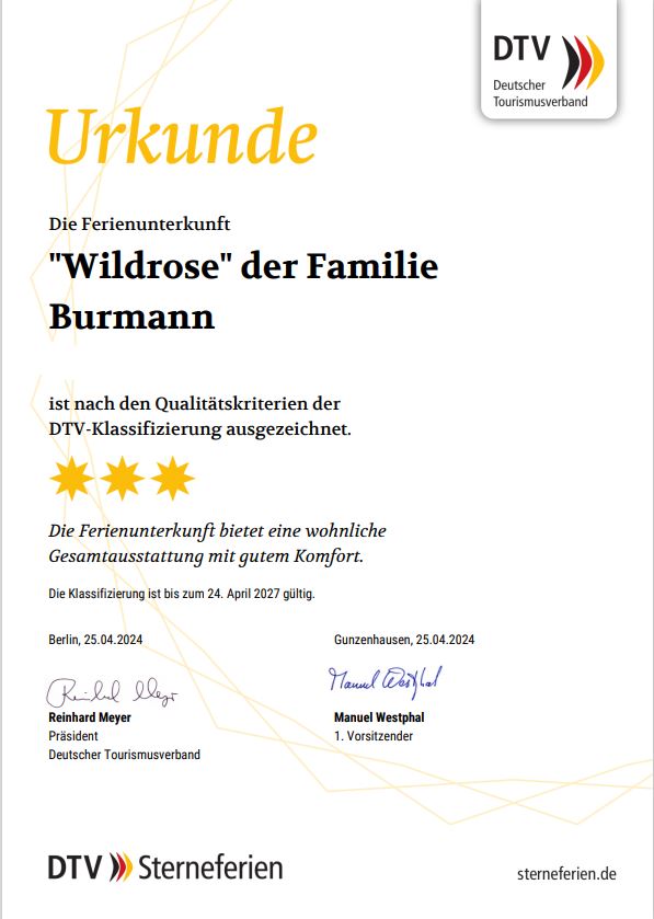 Sie werden in der liebevoll gestalteten Wildrosenwohnung Ihre Seele baumeln lassen. 60 qm bieten Ihnen genug Platz für einen tollen Urlaub auf dem Bauernhof. Die Wohnung ist für bis zu 4 Personen bestens geeignet und verfügt über ein separates Kinderzimmer. Vom großen Süd-West-Balkon haben Sie einen wunderschönen Panoramablick auf den Altmühlsee. Oder schauen Sie Ihren Kindern entspannt mit einer Tasse herrlich duftenden Cappuccinos beim Bobby-Car-Rennen auf unserer Spielstrasse zu. Die moderne und hochwertige Ausstattung der Wohnung garantiert Ihnen einen F****-Sterne-Komfort (DTV).