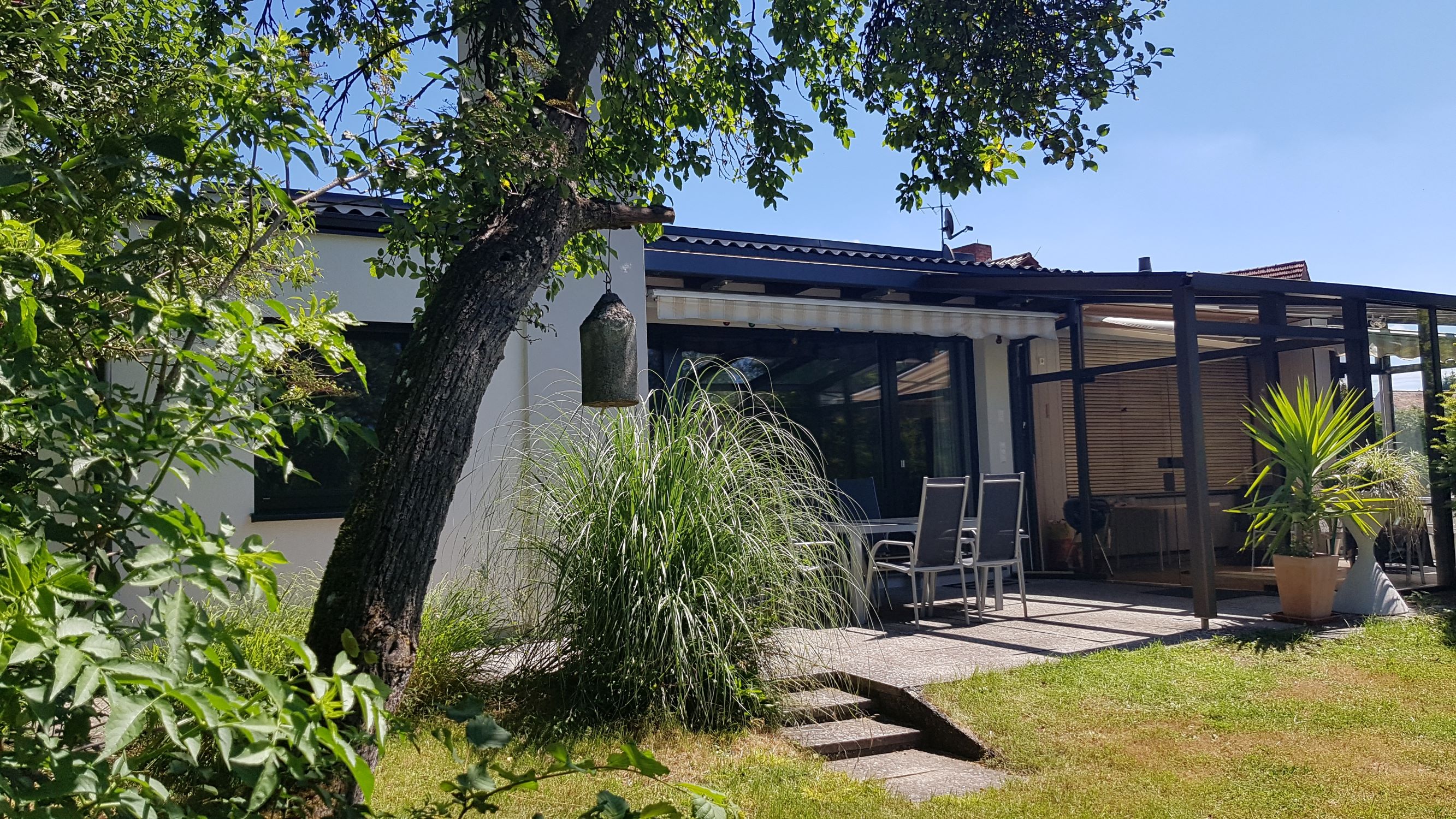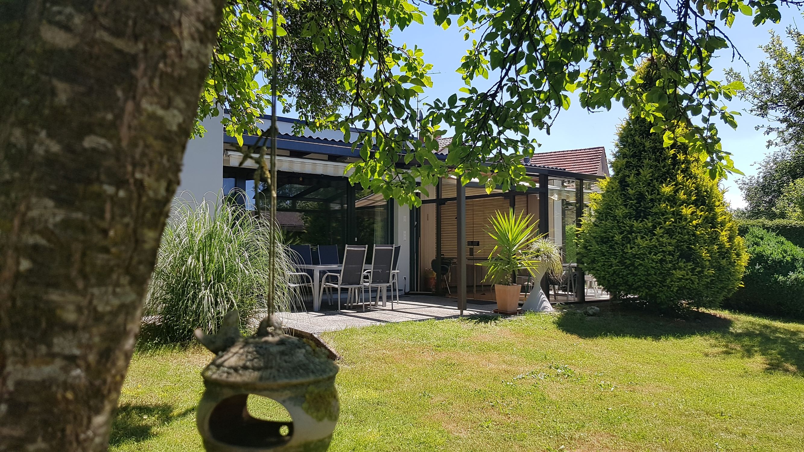 Eine geräumige Terrasse und ein (unbeheizter) Wintergarten laden an sonnigen Tagen zum Frühstück im Freien ein. Bei einem Grillabend und einem gemütlichen Zusammensein am Lagerfeuerplatz im Garten kann man den Tag im Ferienhaus Brenzblick ausklingen lassen.