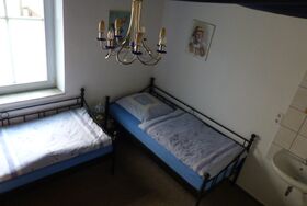 o. hört Musik. Die Küche ist ausgestattet mit allem was man braucht. Haben Sie extra Wünsche wollen wir Ihnen diese gerne erfüllen. 1 Schlafzimmer mit 2 Einzelbetten u. eines mit einem Doppelbett.Ein Beistellbett