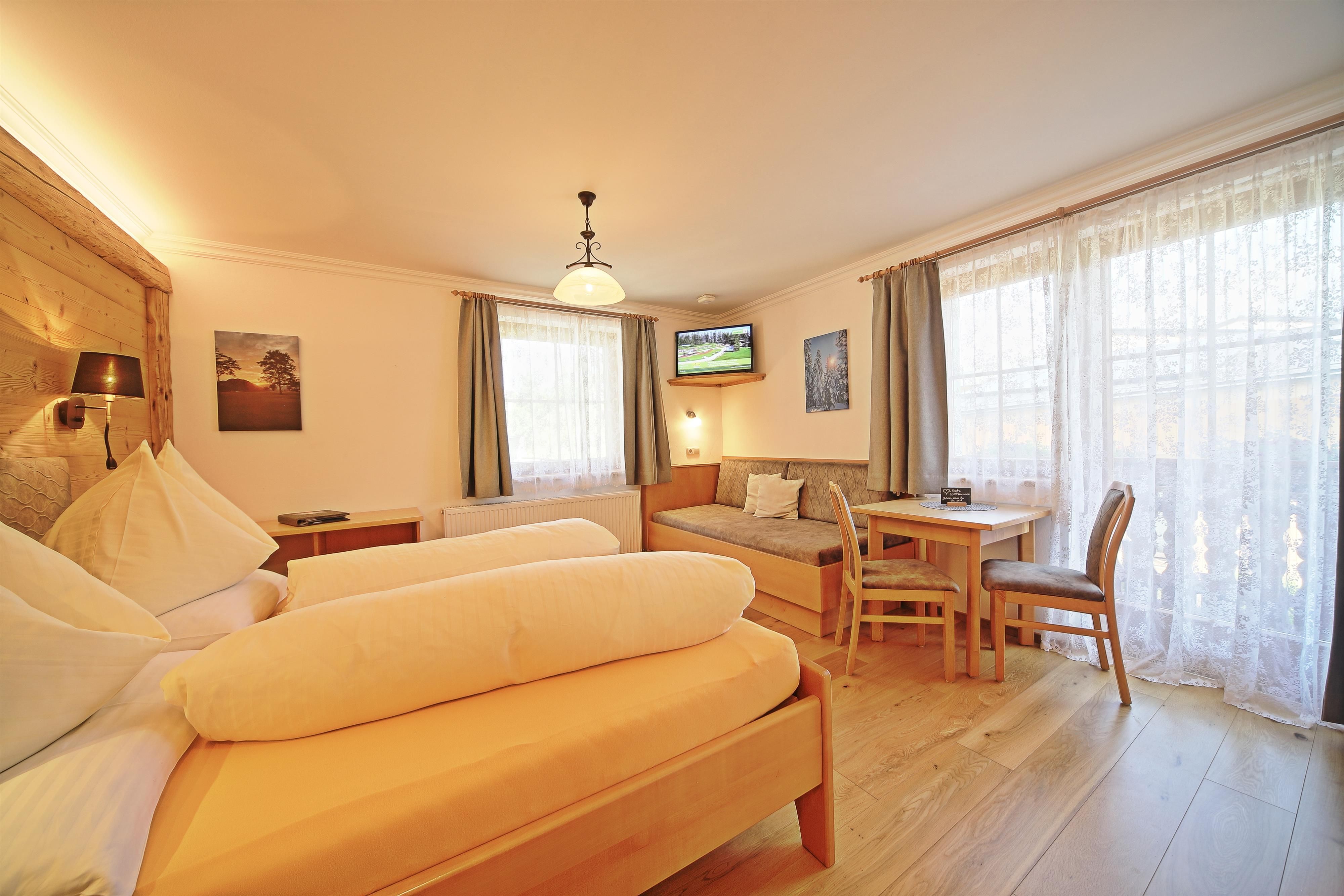 Komfortable Doppelzimmer mit Dusche und WC, Balkon, Kabel-Flat, Radio, Safe und gratis W-LAN. In unmittelbarer Nähe vom Zentrum in Rohrmoos. Saunabereich; Frühstücksbuffett.