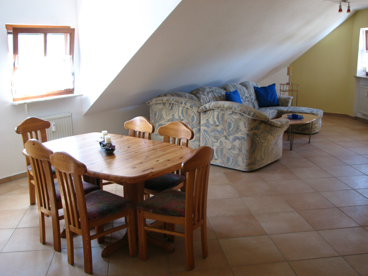 Sie befindet sich im 1. OG eines schönen Zweifamilienhauses. Die liebevoll eingerichtete Wohnung ist ca. 120 m² groß und bietet genug Platz für vier bis sechs Personen.