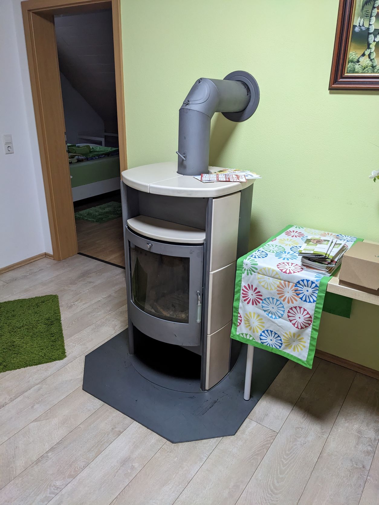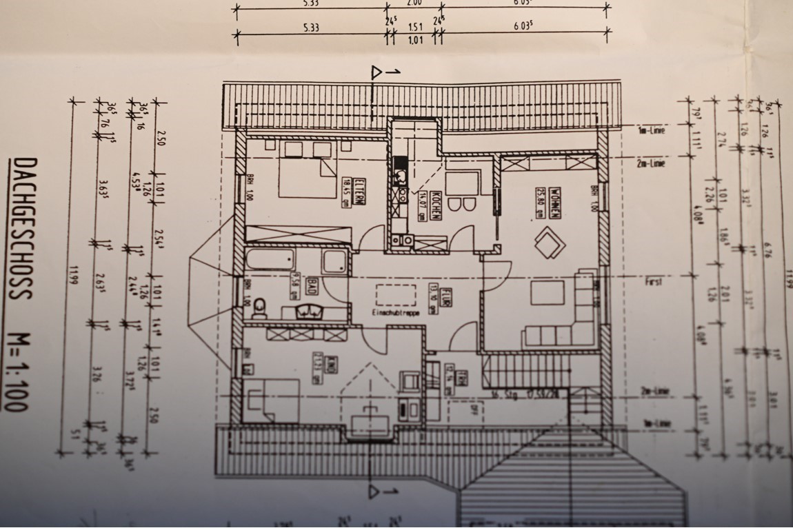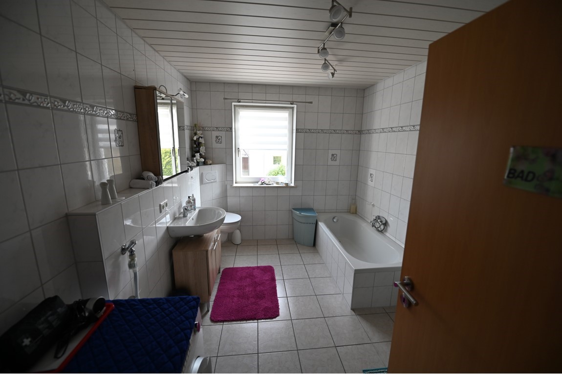 Unsere Wohnung liegt im 1. OG eines zwei Familienhaus und besteht aus drei Zimmern, einem Flur, Bad mit Wanne und Dusche, Küche mit Essecke. Die Wohnung ist 102 qm groß und hat einen Laminat-Fußboden bzw. das Bad ist gefliest. Unser Haus ist ein Nichtraucherhaus, vor der Tür befindet sich aber eine überdachte Raucherecke. Unser Haus und Garten sind mit kostenfreiem WLAN ausgestattet. Das gemütliche Wohnzimmer verfügt über einen 142 cm großen Fernseher, einen Blu-Ray-Player und eine Dolby-Surround-Anlage. Die Couch kann als Schlafmöglichkeit verwendet werden. Beide Schlafräume sind mit jeweils einem Doppelbett ausgestattet. Das geräumige Badezimmer mit Badewanne und ebenerdiger Dusche rundet das Gesamtbild ab. Das WC ist 5 cm höher als normal und wird von großen und älteren Menschen gerne angenommen. Im Badezimmer befindet sich auch eine Waschmaschine. Die Wohnküche mit Cerankochfeld, Kühlschrank mit Gefrierfach (extra Tür), Dunstabzugshaube, einem Kinderstuhl, Spülmaschine und einem Tisch mit 6 Stühlen lädt zu gemütlichen Kochabenden ein.