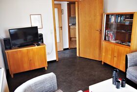 Sie erwartet eine gemütlich eingerichtete 45qm große abgeschlossene Wohneinheit im ersten Stock. In ihr befindet sich ein Schlafzimmer, ein Wohnzimmer mit SAT-TV, HiFi-Anlage und W-LAN, sowie eine Wohnküche mit Einbauküche. Das Bad verfügt über Dusche, Waschbecken und WC.