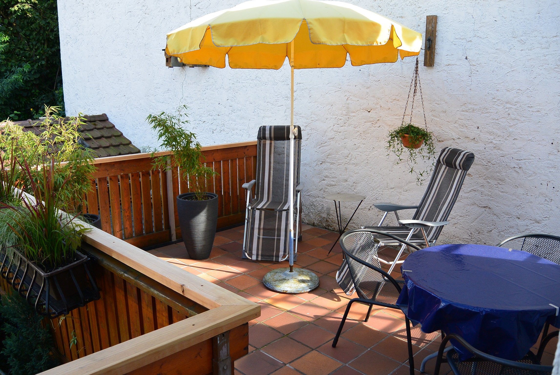 Vor der Wohnung befindet sich eine Terrasse, die zum Entspannen einlädt und von der aus Sie unseren Garten im Blick haben.
