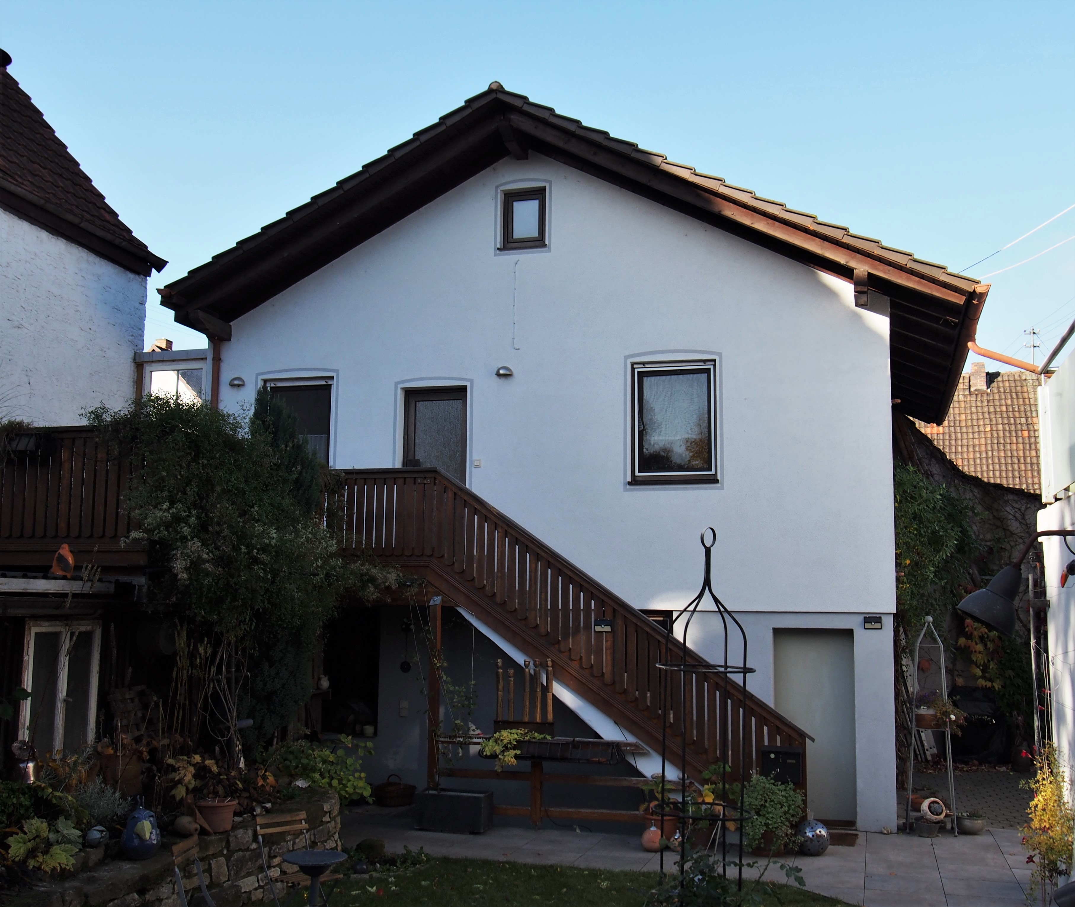 Unsere renovierte Ferienwohnung liegt in einer ruhigen Seitenstraße des altfränkischen Weindorfes. Die Wohnung befindet sich in einem separaten Nebengebäude mit Blick auf Kirche und Weinberge.