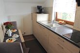 Das Appartement besteht aus einem kombinierten Wohn- und Schlafraum. Es ist ein Doppelbett vorhanden. Im Wohnbereich ist ein Fernseher vorhanden. Die Küchenzeile ist gut ausgestattet mit einem Wasserkocher, Kaffeemaschine, Toaster und einem Kühlschrank. Eine kleine Essecke ist vorhanden. Das Bad verfügt über Dusche und WC und Waschbecken. Außerdem ist ein großer Balkon vorhanden. Bettwäsche und Handtücher sind im Grundpreis enthalten.