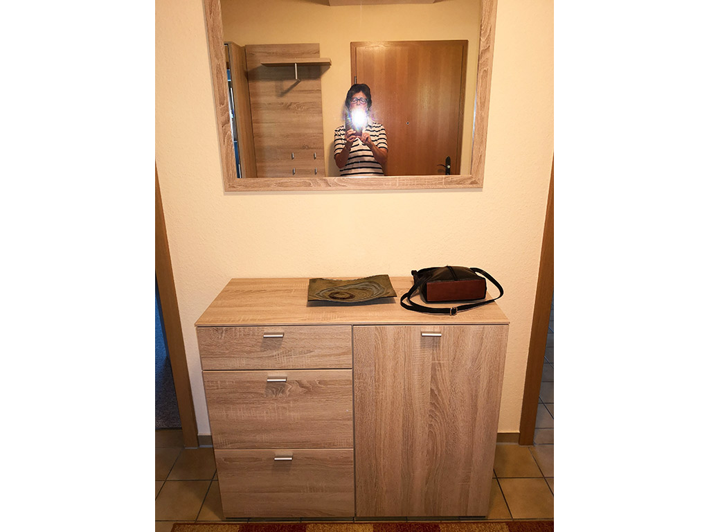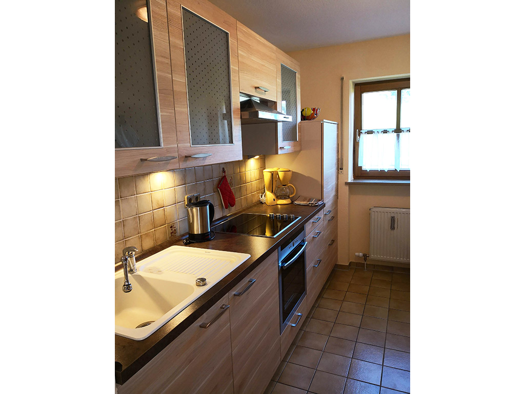 Flachbildfernseher, Radio mit CD-laufwerk und USB, Telefon,Terrasse möbliert. Küche mit Cerankochfeld, Backofen und Dunstabzug, Kühlschrank mit Gefrierfach. Kaffeemaschine, Wasserkocher, Toaster, Brotschneidemaschine. Geschirrtücher, Spülmittel, Spültuch und weitere Reinigungsmittel, sowie Staubsauger sind in der Ferienwohnung vorhanden.