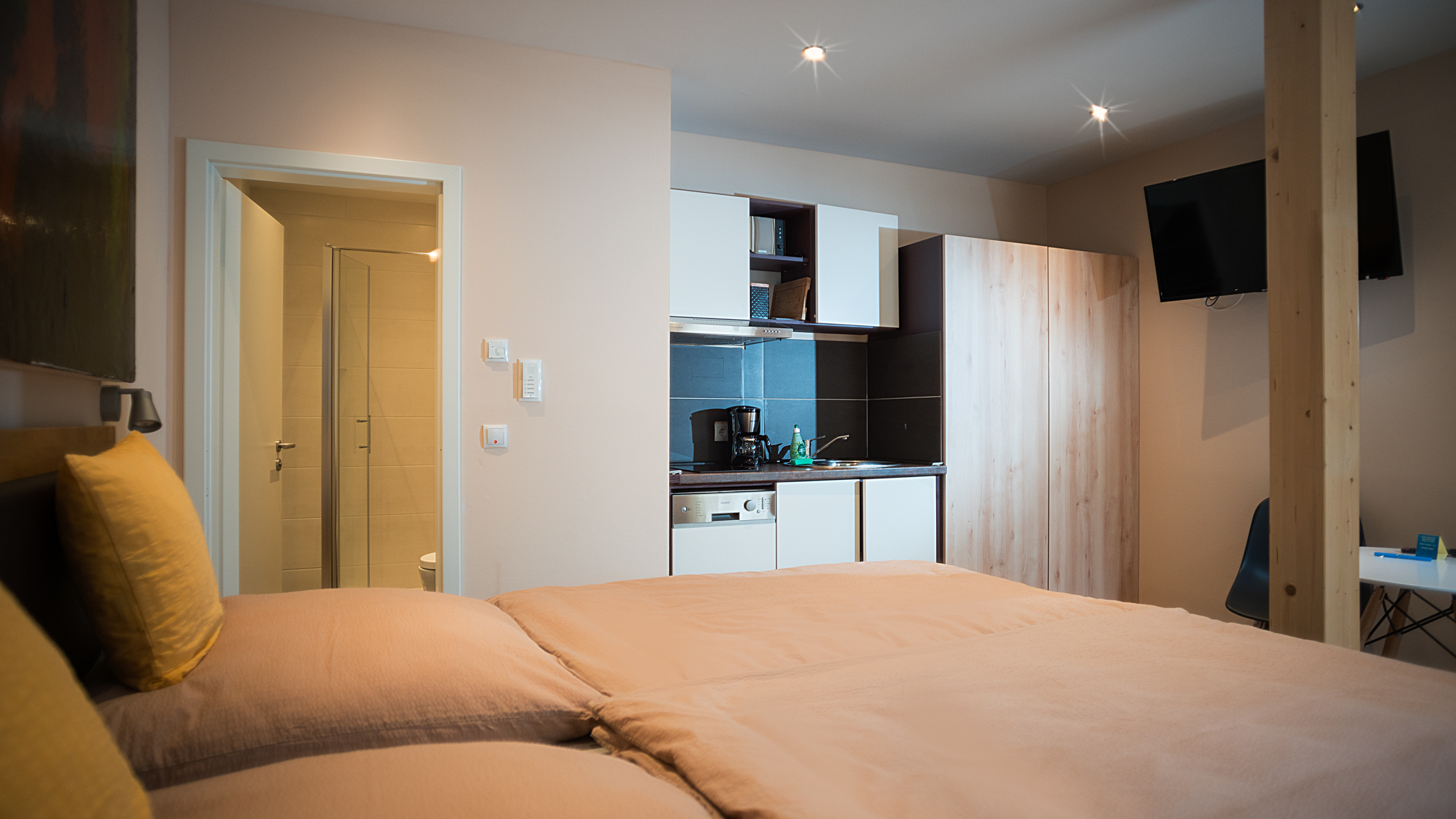 Der angegebene Preis für das Appartement gilt für die Belegung als EZ, jede weitere Person wird mit 20,00 € berechnet, Kinder mit 10,00/Tag €.