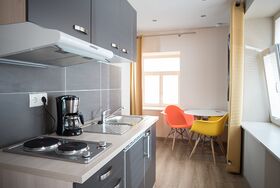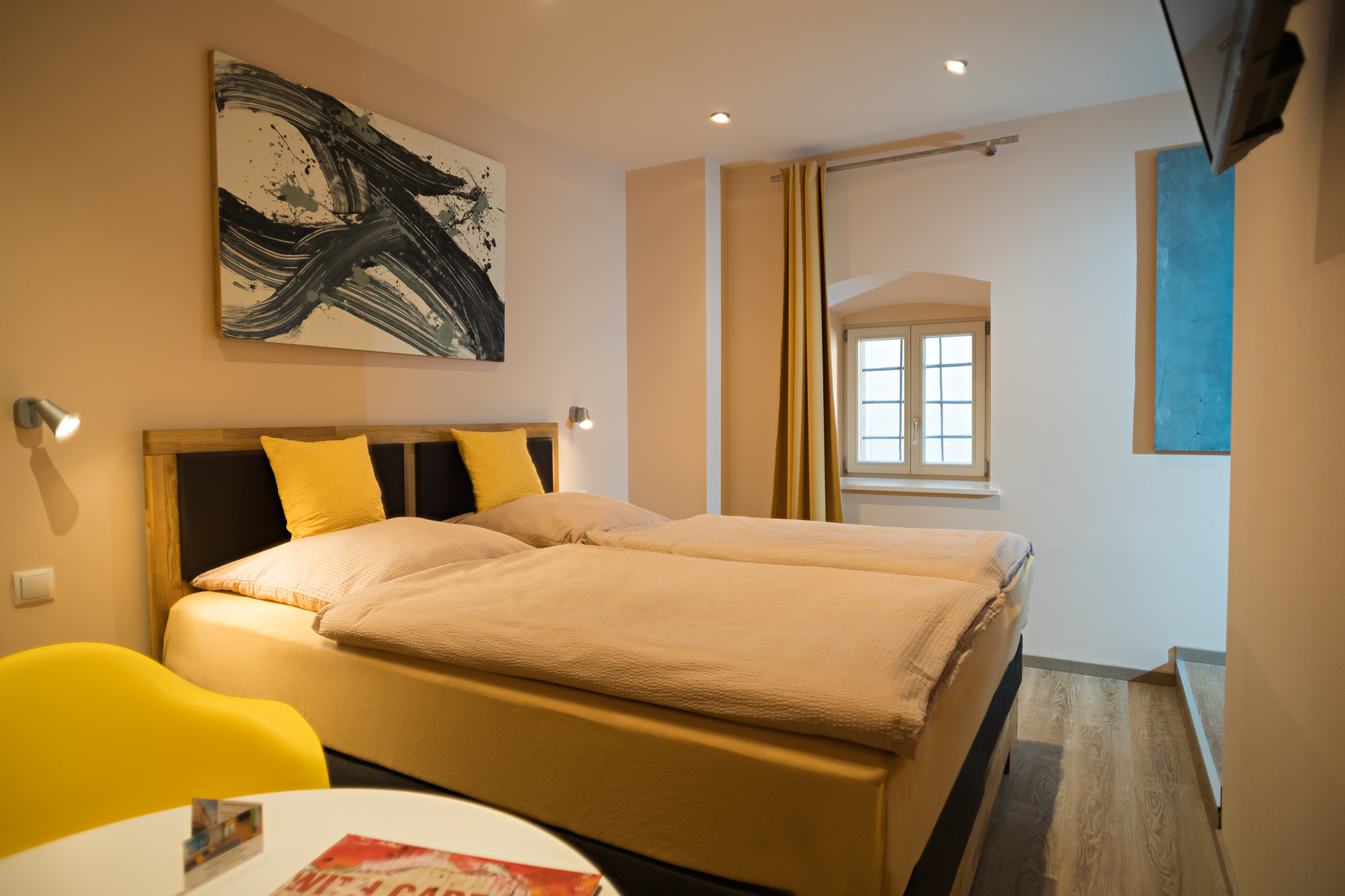 Schnuckeliges DZ mit großezügiger Dusche/WC, hochkomfortablem Boxspringbett, TV, Sitzecke, Schreibtisch und vollständig ausgestattet Küchenzeile. Ideal für den Kurzurlaub am Main oder den Geschäftsreisenden, der längere Zeit vor Ort seiner Arbeit nachgehen will.
