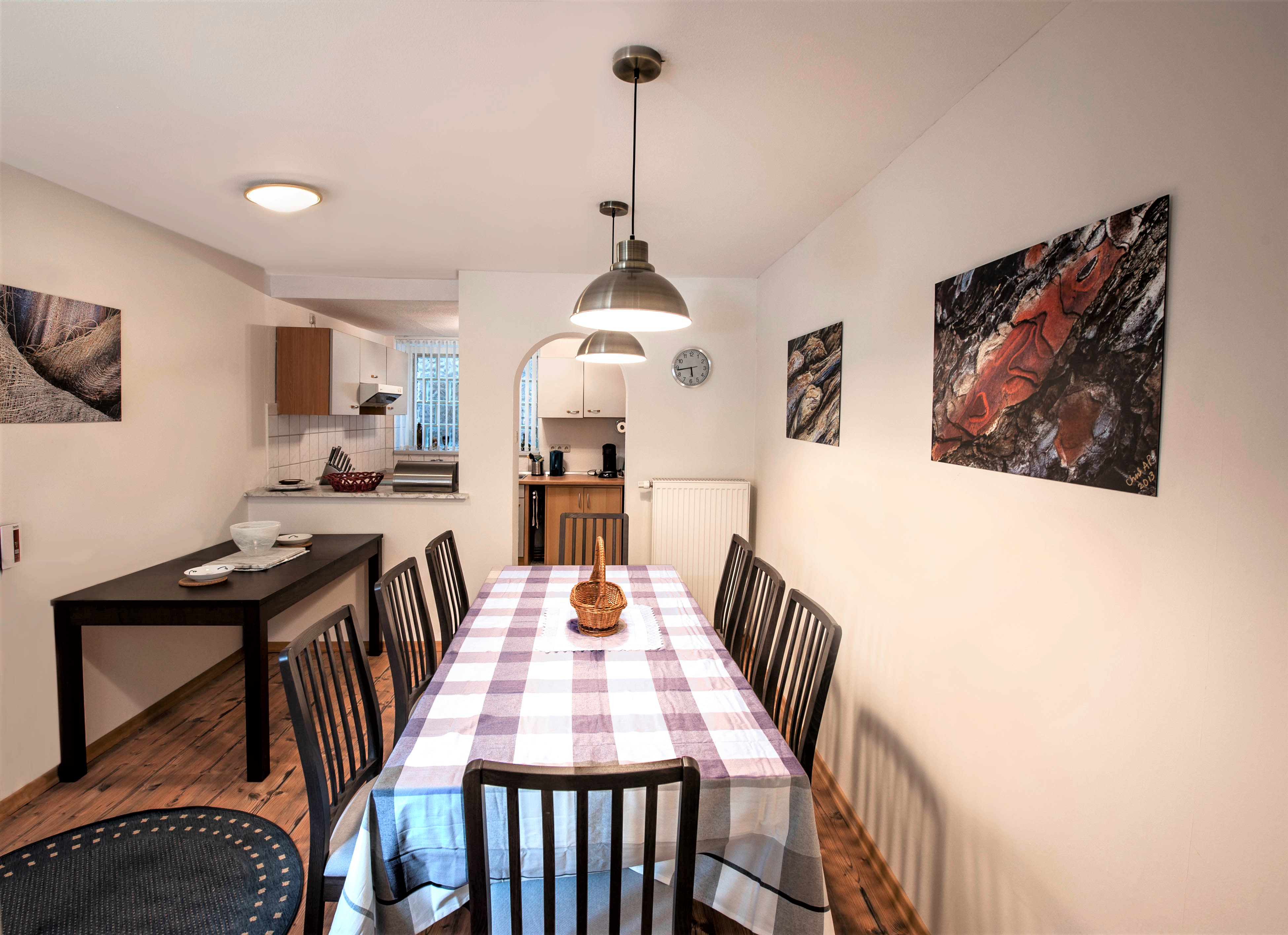 Komplett renoviertes ruhiges Nichtraucher Fachwerk-Bauernhaus (80qm) auf zwei Etagen mit separatem Eingang. Ein Schwedenofen im Wohnzimmer sorgt für kuschelige Wärme. Drei Schlafzimmer für erwachsene Personen geeignet (1x Doppelbett, 2x Einzelbetten, 2x Einzelbetten) ebenfalls ein Kinderschlafzimmer mit einem Etagenbett. Im Obergeschoss befinden sich die Schlafzimmer und ein Badezimmer mit Dusche und WC. Ein zweites Badezimmer mit kombinierter Duschbadewanne und WC befindet sich im Erdgeschoss. Die Küche ist voll ausgestattet und an einem großzügigen Esszimmer angeschlossen. Eine Filterkaffeemaschine steht kostenfrei zur Verfügung. Bettwäsche und Handtücher werden gestellt. Parkplatz vorhanden. Hohnhausen ist ein idealer Ausgangspunkt für Wander- und Radwandertouren. Des Weiteren bestehen gute Verbindungen für weitläufige Erkundungen mit dem Auto wie z.B. der Städte Bamberg, Coburg, Heldburg, Würzburg, Rothenburg ob der Tauber und die fränkische Weingegend. Bitte beachten Sie, dass aus gesundheitlichen Gründen keine Haustiere erlaubt sind.