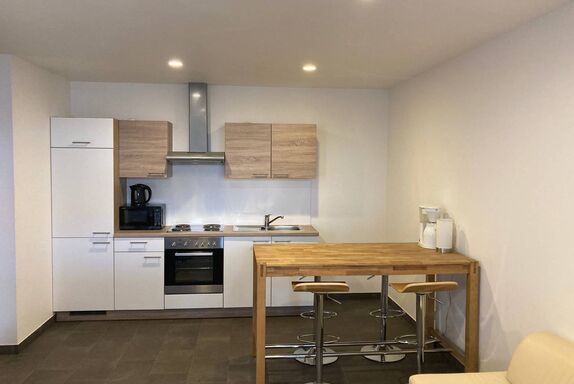 Die Ferienwohnung ist modern und hochwertig ausgestattet. Das 43qm große Appartement hat ein Schlafzimmer. Dieses ist mit einem extragroßen King Size-Bett (Doppelbett) ausgestattet. Im Wohnzimmer ist ein Schlafsofa vorhanden, welches auf Anfrage als Einzel- oder Doppelbett zugebucht werden kann. Ein zusätzliches Einzelbett kann auf Anfrage zugebucht werden. Die Küche ist mit allen wichtigen Küchenutensilien ausgestattet. Auch eine Essecke befindet sich in der Wohn- /Essküche. Außerdem befindet sich ein Flachbild-TV im Wohnbereich. Das Badezimmer ist mit Dusche, WC und einem Handtuchtrockner ausgestattet. Die gesamte Wohneinheit befindet sich im Erdgeschoß. Selbstverständlich sind Bettwäsche und Handtücher inklusive. Das WLAN ist kostenfrei verfügbar.