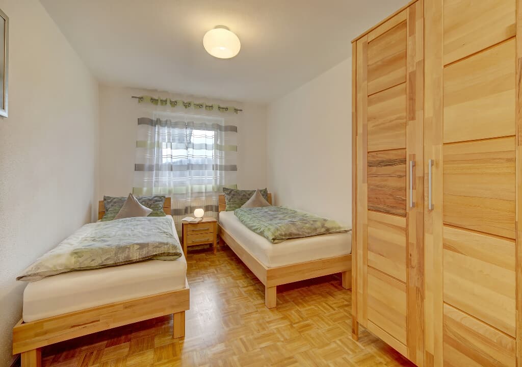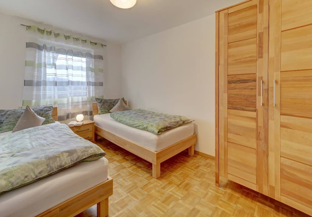 Eines der Schlafzimmer ist mit einem Doppelbett ausgestattet, das andere mit zwei Einzelbetten. In den Betten befinden sich verschiedene Matratzenhärten.