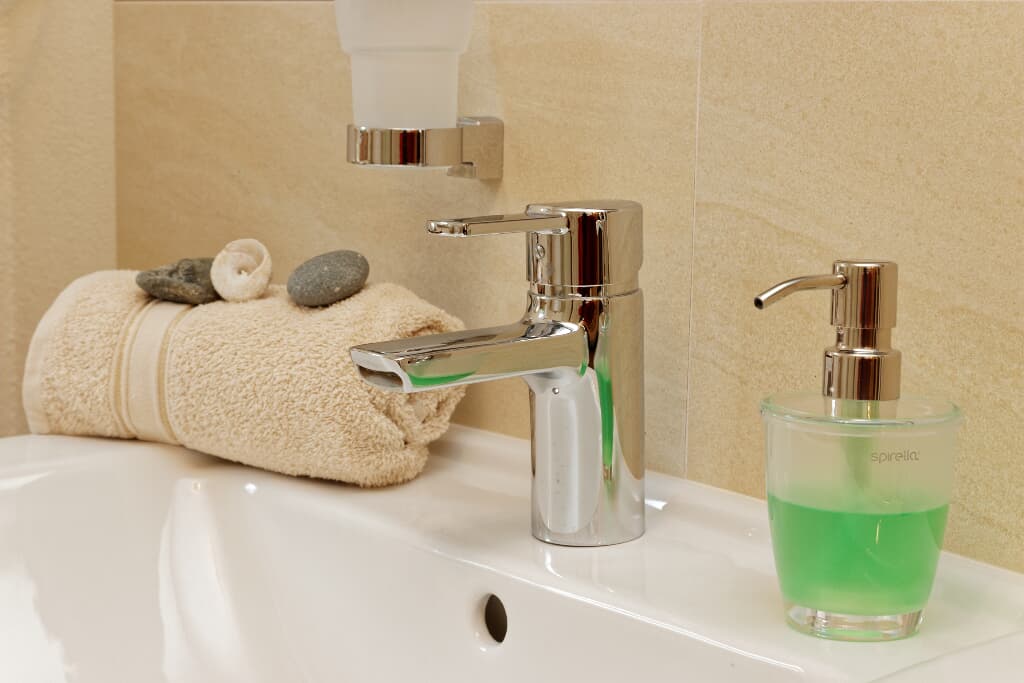 und einen Fön. Auch Handtücher stehen zur Verfügung.