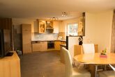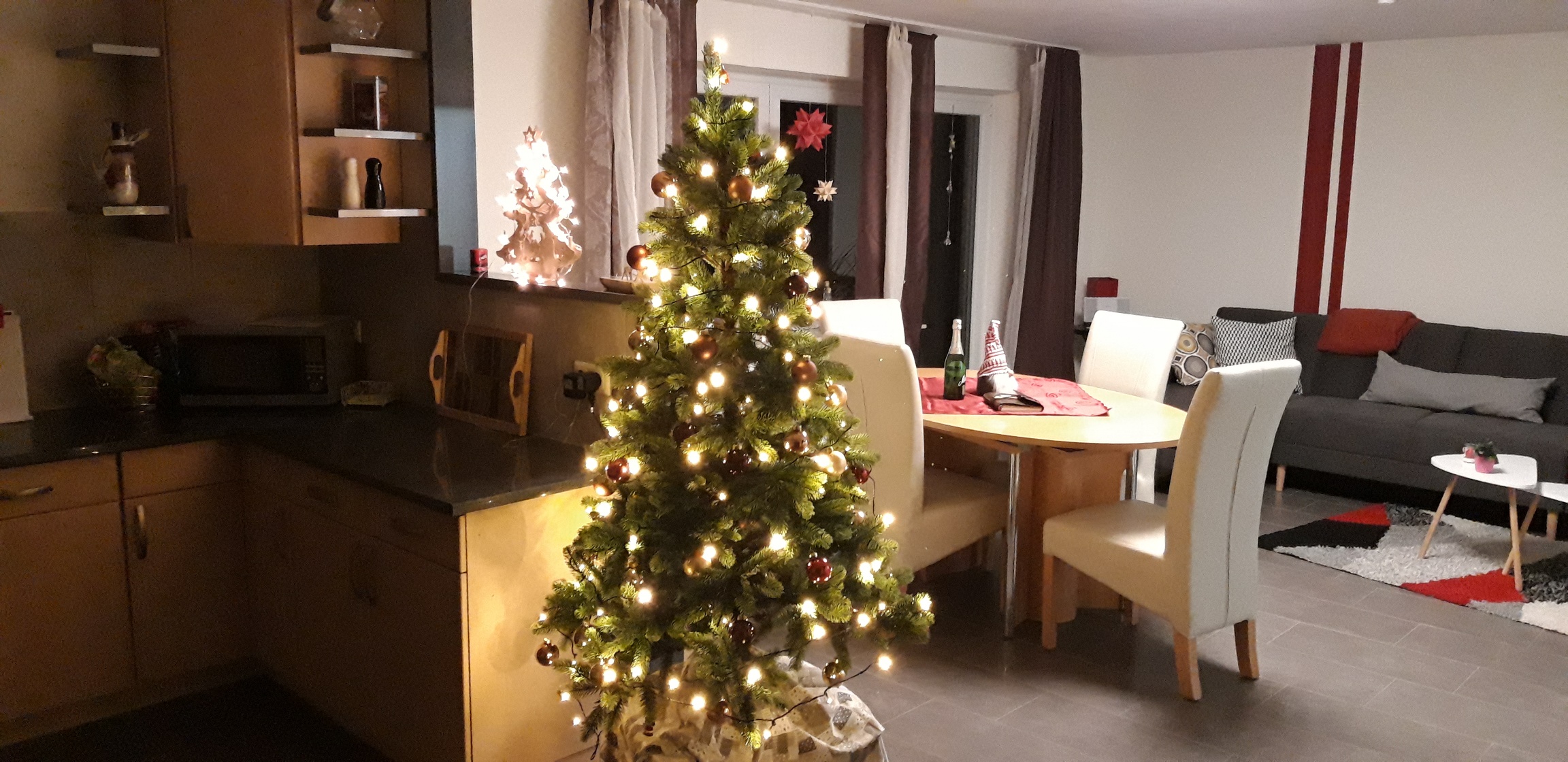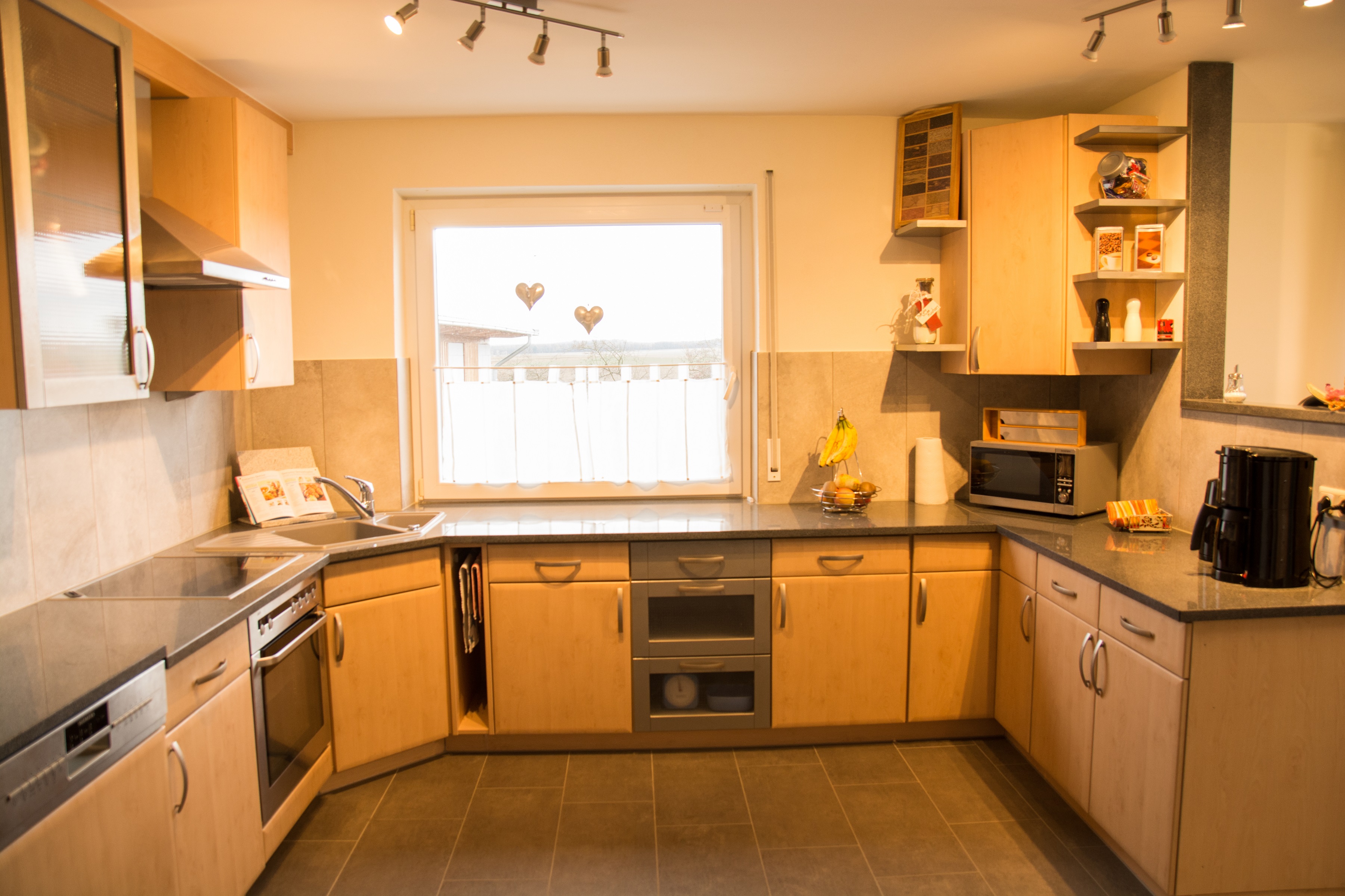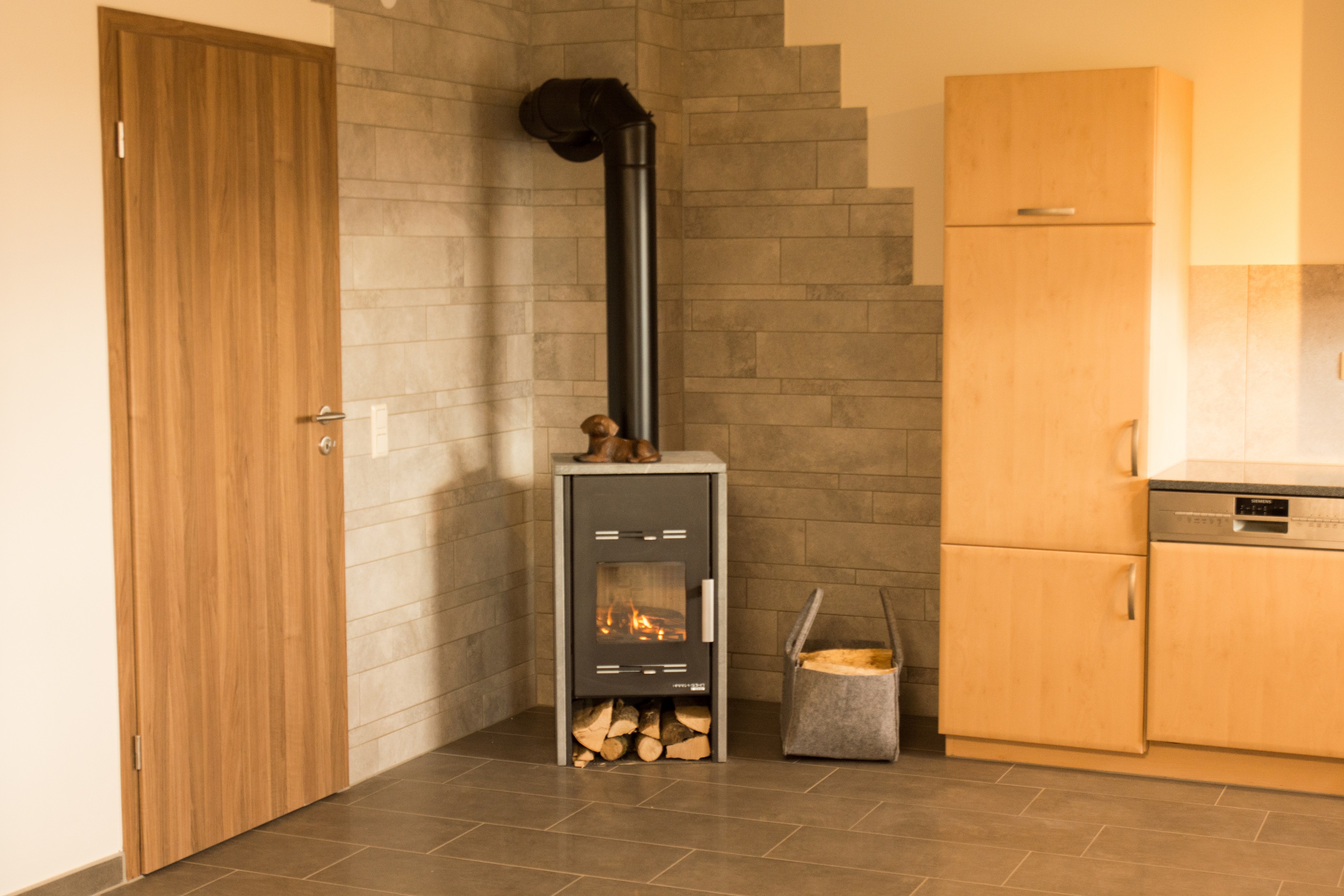 Ob Spülmaschine, Backofen, Kaffeemaschine mit zweiter Kanne, Brotschneidemaschine, Toaster, Waschmaschine, Flachbildfernseher oder Kamin, die Wohnung ist vollständig ausgestattet. Die 100 m² große Ferienwohnung mit zwei Schlafzimmern und mind. 5 Schlafplätzen - (Ausnahme 7 Erwachsene) liegt in ruhiger, ländlicher Umgebung.