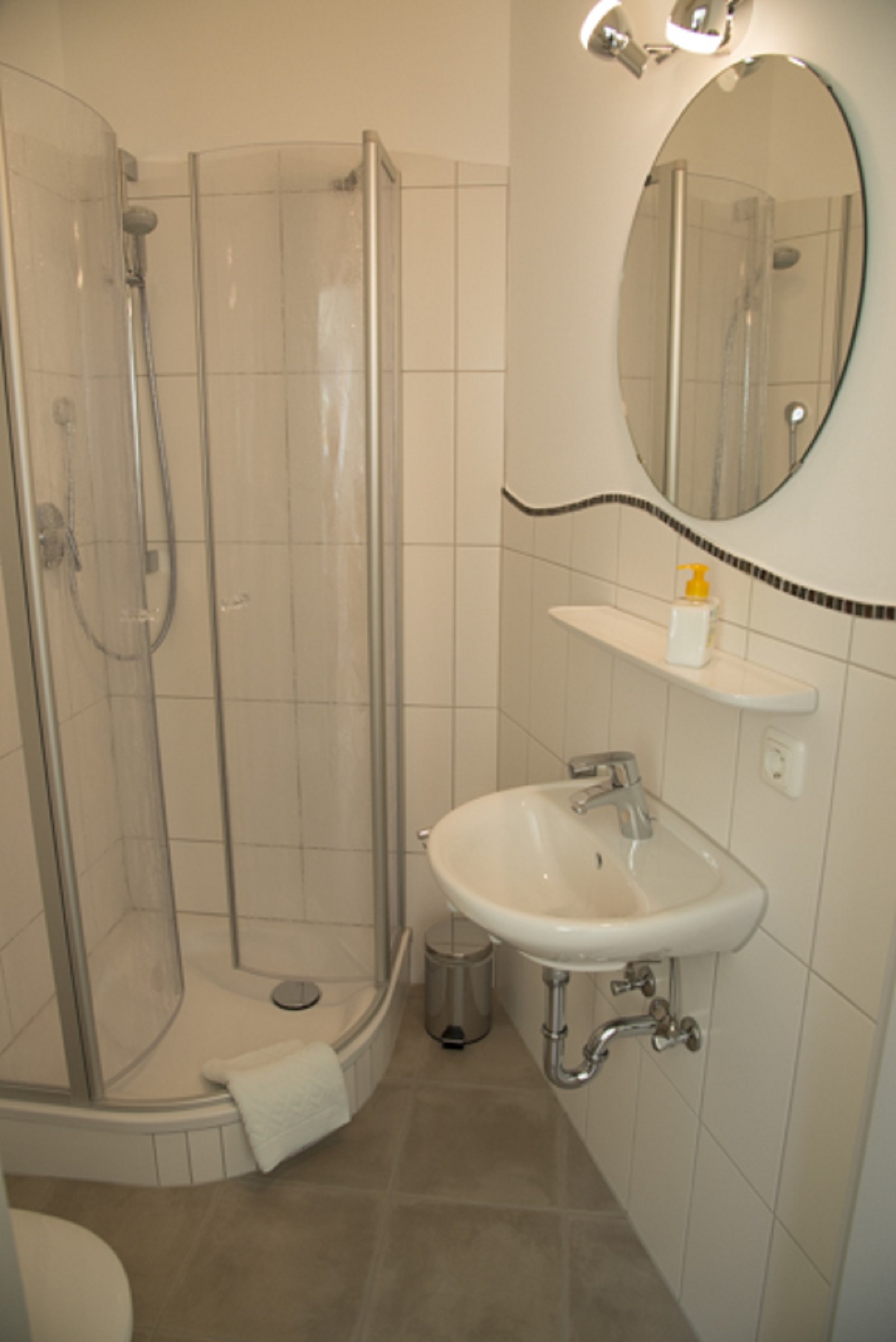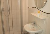Gehobene Ausstattung mit HD-Flachbildschirmfernseher und Schreibtisch, Bad mit WC, Dusche und Waschbecken, Handtücher und Föhn bekommen Sie von uns. WLAN im Zimmer verfügbar. Alle Zimmer mit Außenrollos.