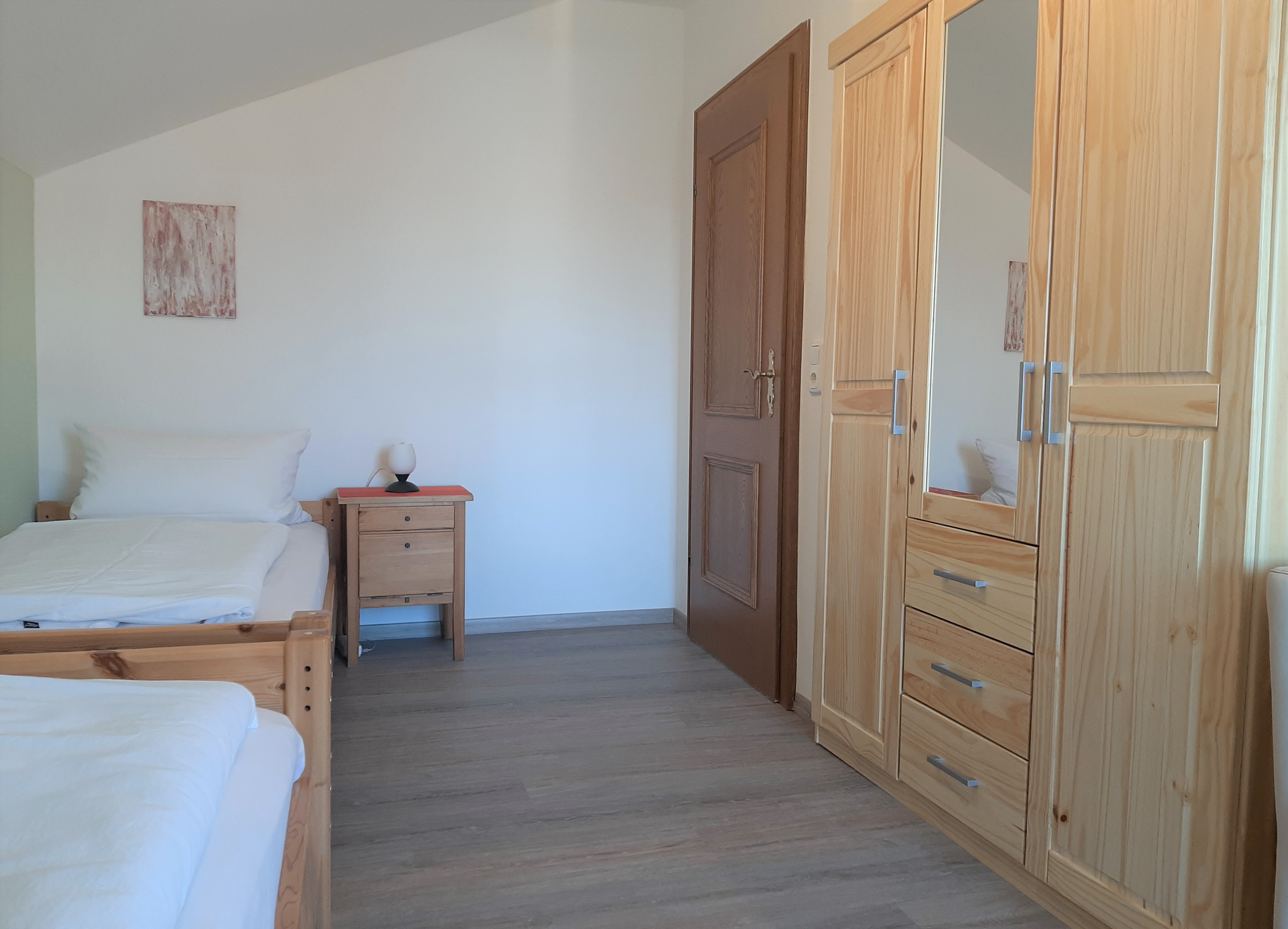 Im kleineren Schlafzimmer 13 m² sind zwei Einzelbetten(90*200) zu finden. Beide Schlafzimmer haben je einen Balkon.