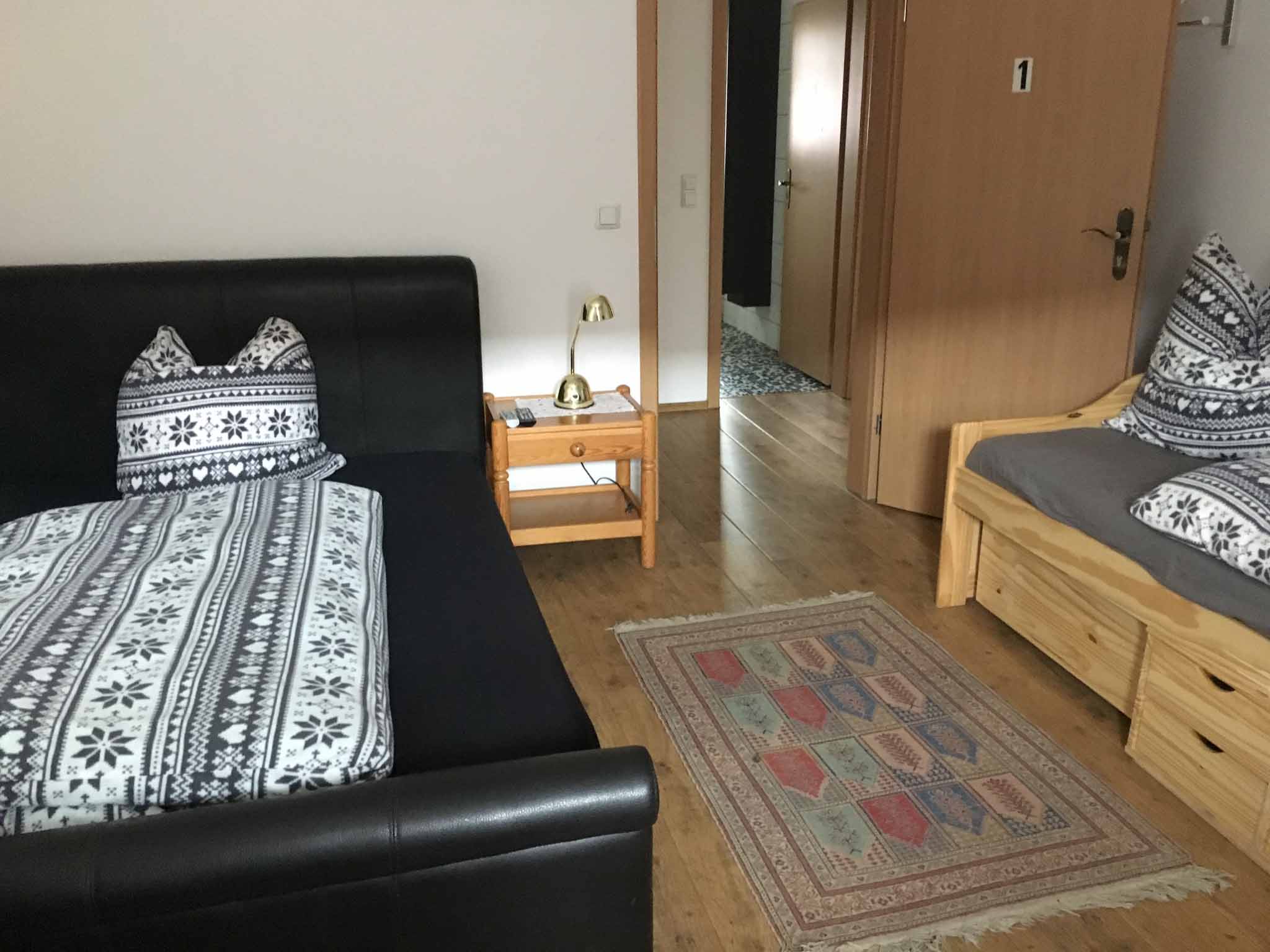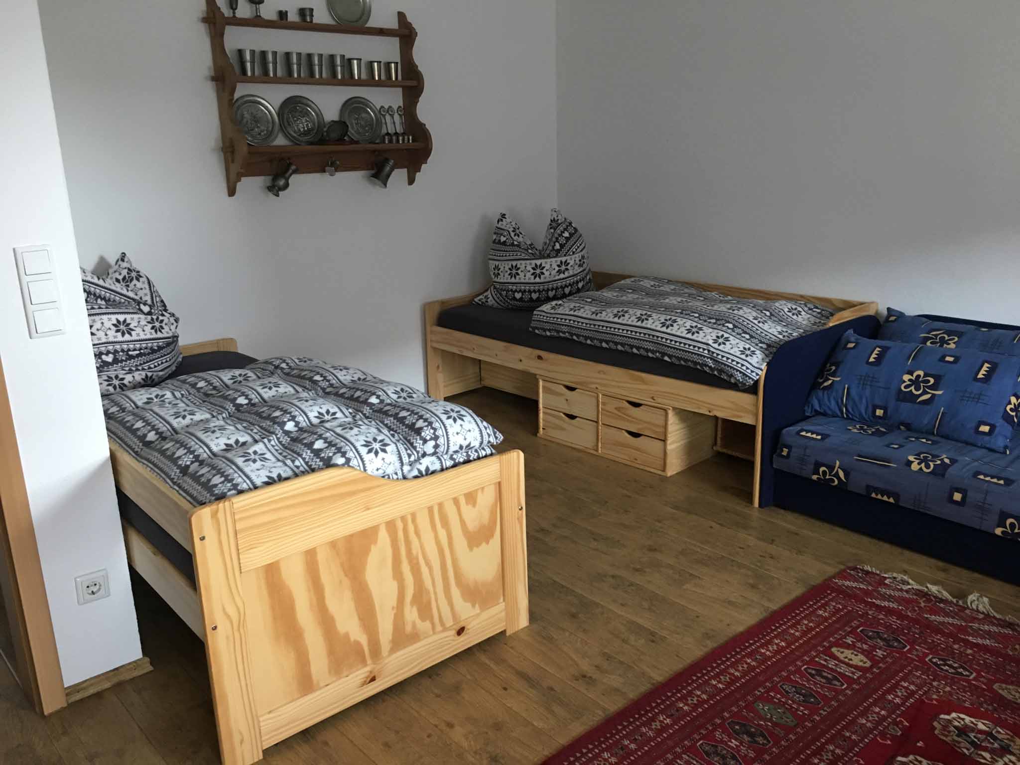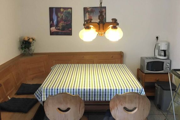 Die Ferienwohnung bietet auf 70qm Wohnfläche Platz für bis zu 6 Personen. Die ausgestattete Wohnküche mit Backofen, Geschirrspüler, Kaffeemaschine, Kühlschrank, Mikrowelle und Toaster sowie eine gemütliche Essecke lässt keine Wünsche offen. Die Ferienwohnung verfügt über ein Doppelzimmer mit einem französischen Bett und einem Einzelbett und ein Dreibettzimmer mit drei Einzelbetten und zusätzlicher Schlafcouch. Das Badezimmer mit Dusche und WC rundet das Gesamtbild ab. Außerdem sind die Kosten für Endreinigung, Parkplatz und WLAN-Nutzung im Preis enthalten.