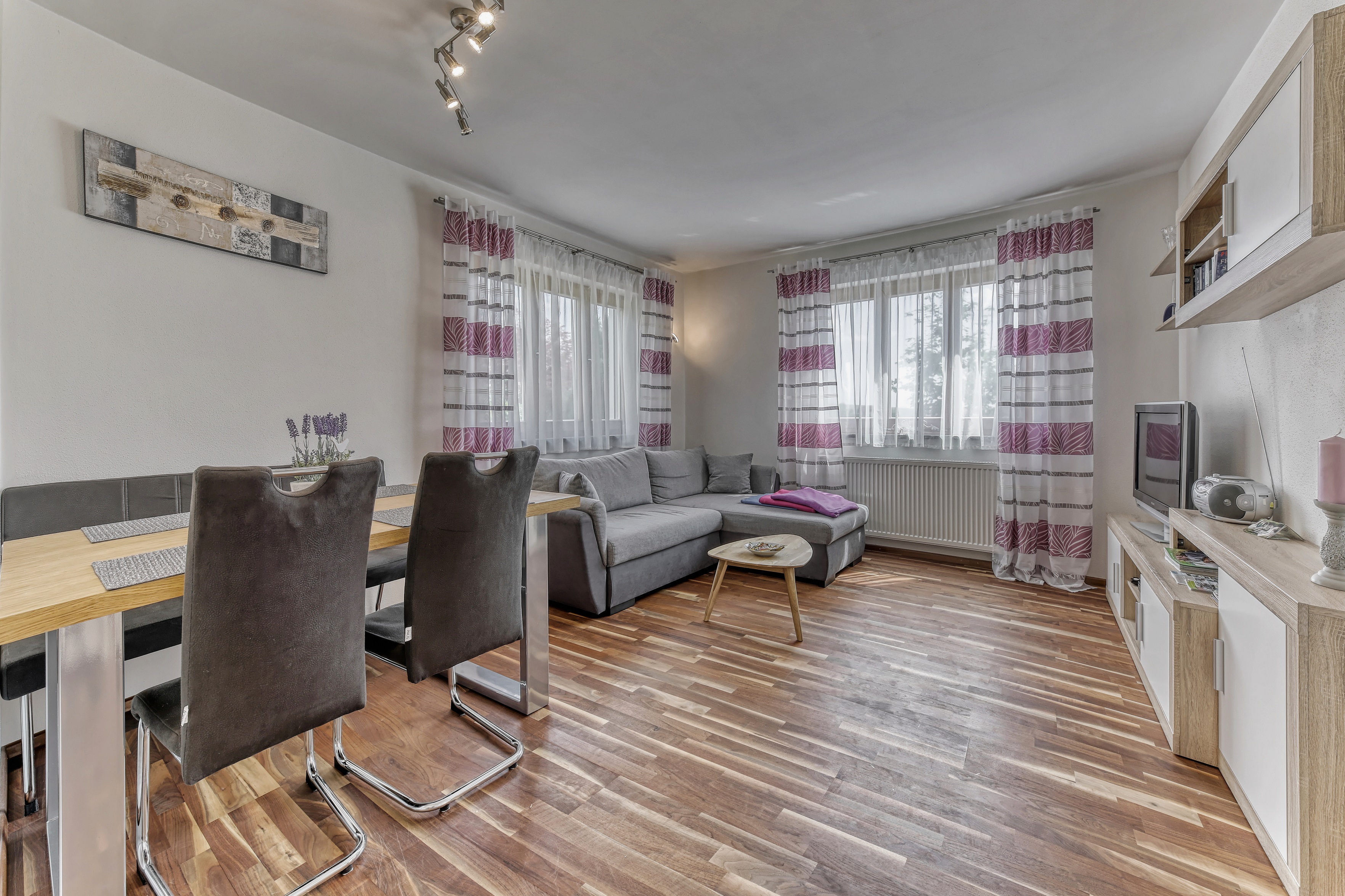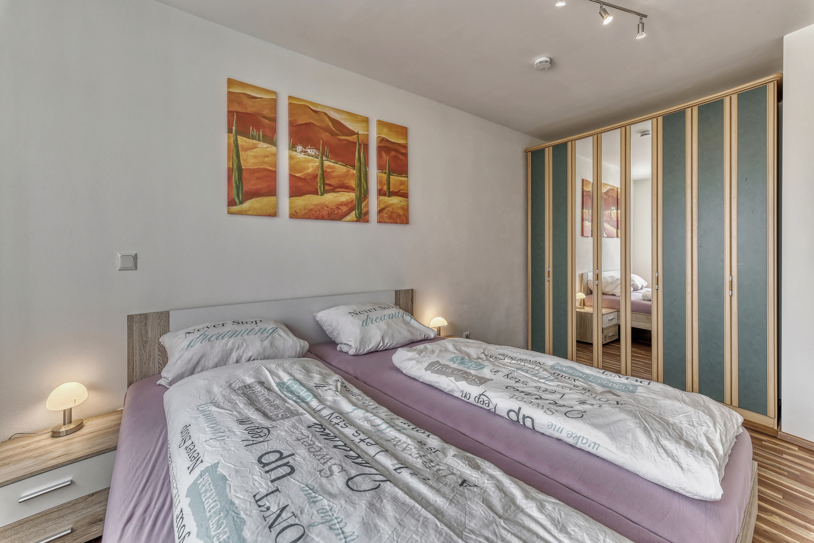 Liebe Gäste unseres Hauses. Es erwartet Sie eine schöne nagelneue Nichtraucher-Wohnung (1x Doppelbett 180x200cm, 1x Schlafsofa ausklappbar ca. 130x200cm für 2 Kinder bis 16 Jahre) mit einer modernen und hochwertigen Ausstattung. Auf Anfrage kann ein drittes Kind bis max. 2 Jahre im Babyzustellbett übernachten. Optional kann das Apartment auf Anfrage ohne Kinder mit 3 Erwachsene belegt werden. Im Schlafzimmer und Wohn- Schlafbereich ist ein Echtholznußbaumparkett verlegt. Fliesenbelag in Bad und Diele. Bad mit Fußbodenheizung. Die Wohnung hat zudem eine kontrollierte Wohnraumlüftung mit Wärmerückgewinnung und Pollenfilter für beste Frischluftqualität. Eine komplett ausgestattete Einbauküche inkl. Kaffee + Tee und ein Kasten Mineralwasser bei Ankunft machen den Aufenthalt besonders angenehm. Kinder zahlen 4,- Euro pro Nacht+Kind) Frische Bettwäsche und Handtücher sind vorhanden.