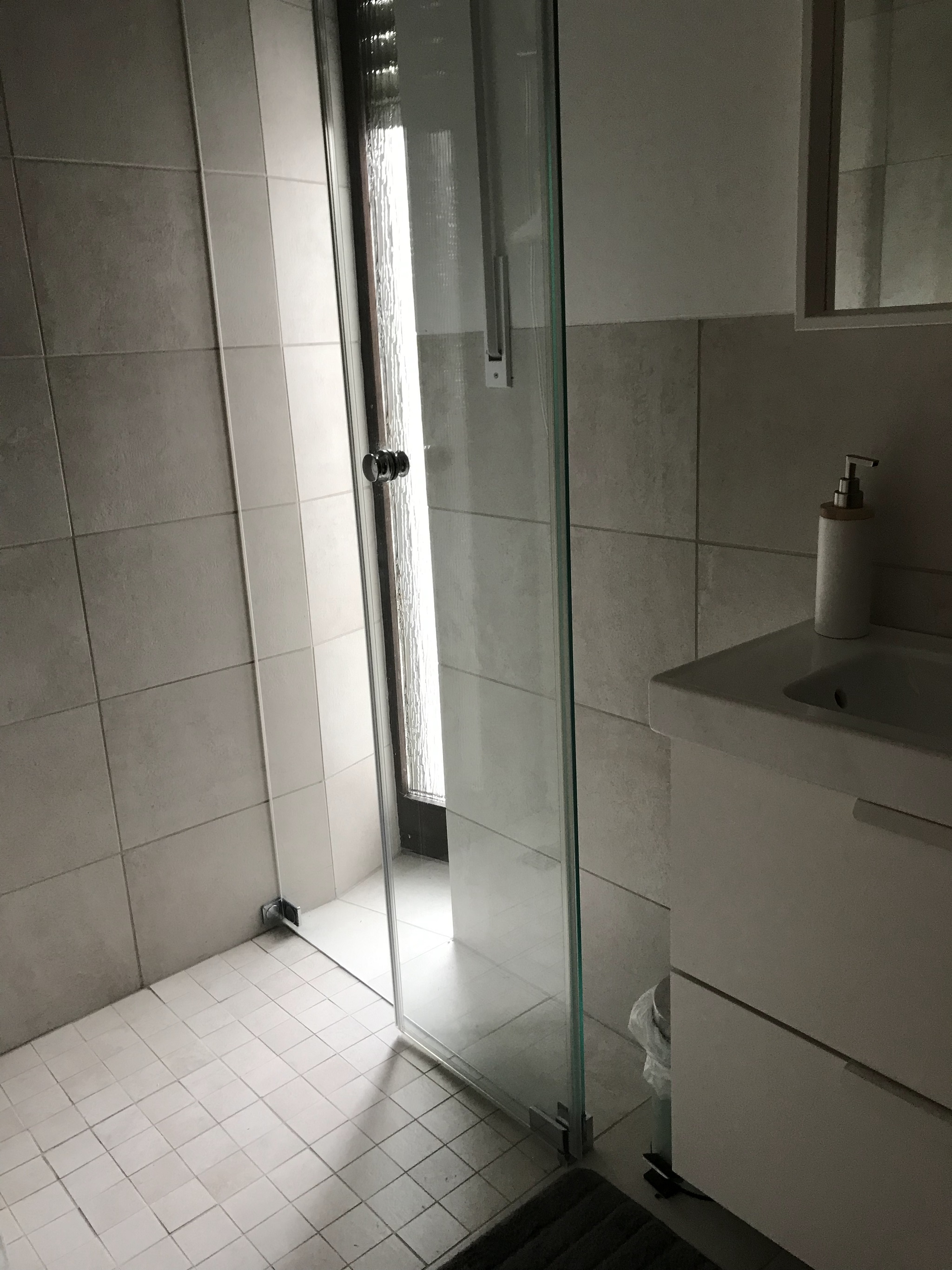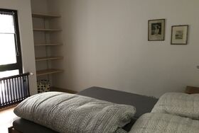 Dusche und WC sind getrennt und frisch renoviert. Das Schlafzimmer hat ein Doppelbett. Handtücher und Bettwäsche sind vorhanden.