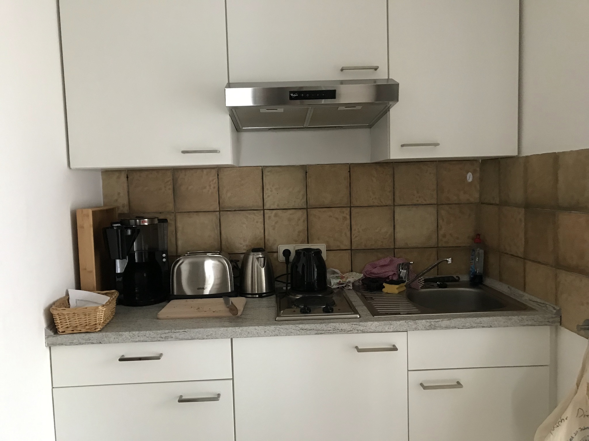 Die Küchenzeile ist funktionsfähig (Kühlschrank, Herdplatten, Kaffeemaschine, Geschirr) ausgestattet. Es gibt eine abschließbare Abstellmöglichkeit für Fahrräder und der Mainradweg ist fünf Minuten entfernt.
