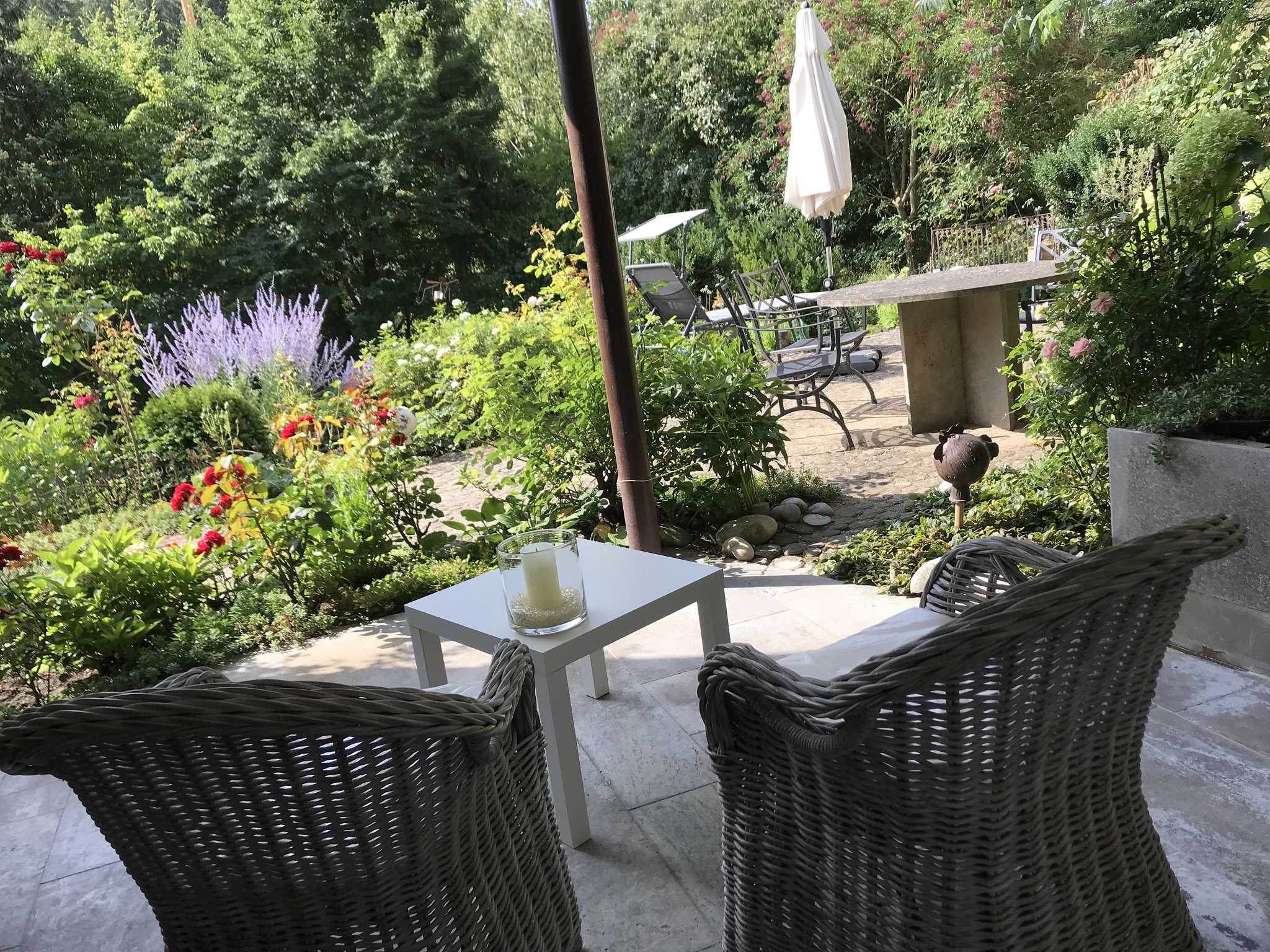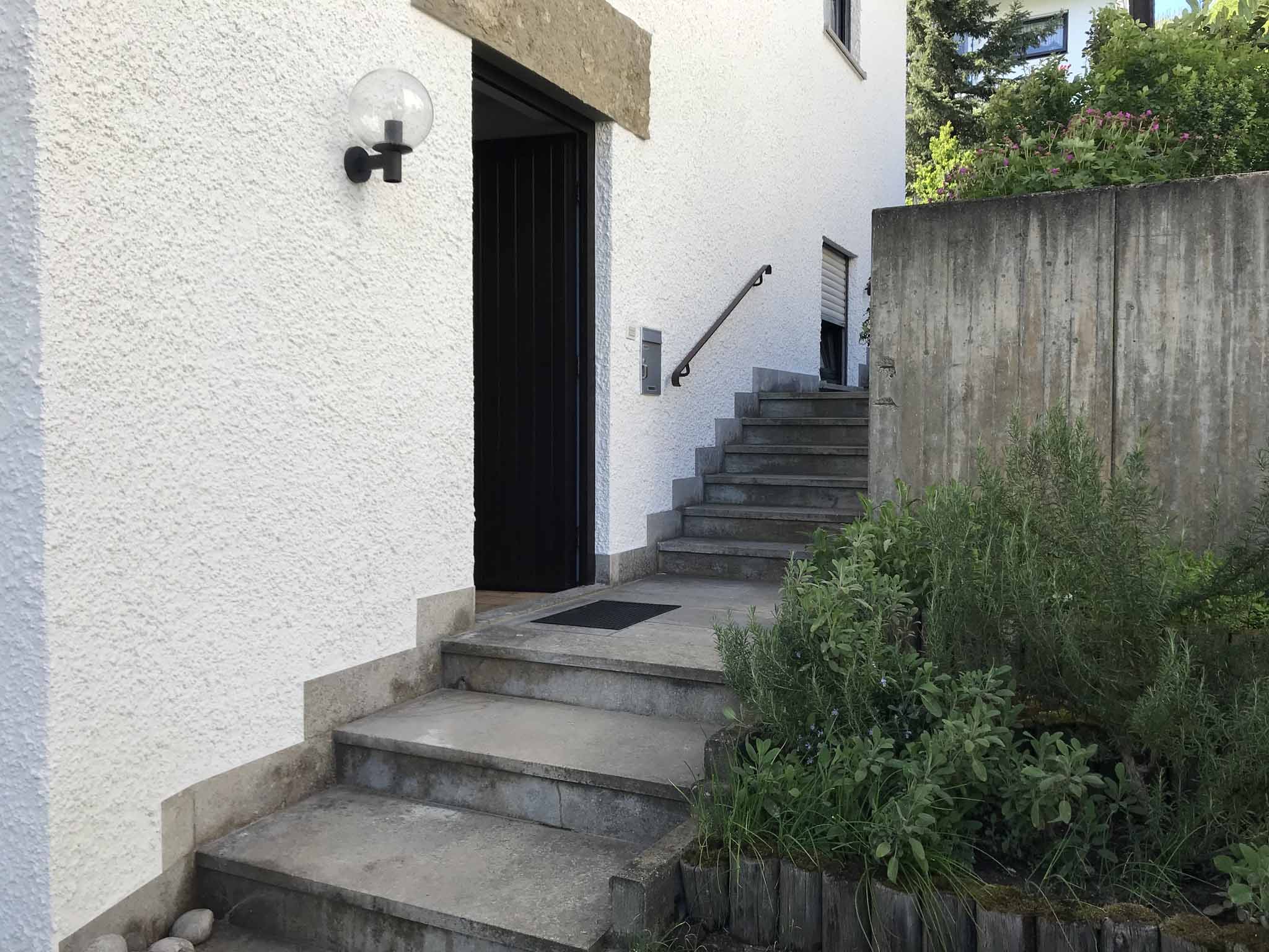 Das moderne Zwei-Zimmer-Appartement (55 Quadratmeter) gehört zu einem Einfamilienhaus und verfügt über einen separaten Eingang sowie eigener Terrasse mit Blick in den Garten. Die Lage am Rande der Weinberge und am Wald ist ruhig.