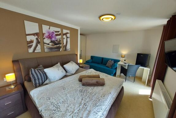 Unser 25 m² großes Ferienzimmer mit Schlafsofa bietet Platz für 3 Personen.
