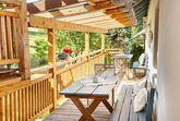 2 Schlafzimmer, im Kinderzimmer sind 3 Betten vorhanden, Dusche/WC, Radiowecker, Fön, TV-Sat, auf Wunsch CD-Player, verfügt über eine herrliche, überdachte Sonnenterrasse mit Gartenbestuhlung. Mit wenigen Treppenstufen erreichen Sie die Liegewiese mit Spielgeräten für Ihre Kinder.