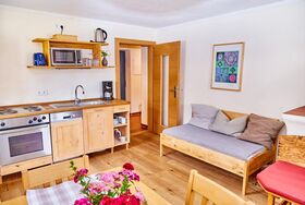 Die Wohnung verfügt über Massiv-Naturmöbel.