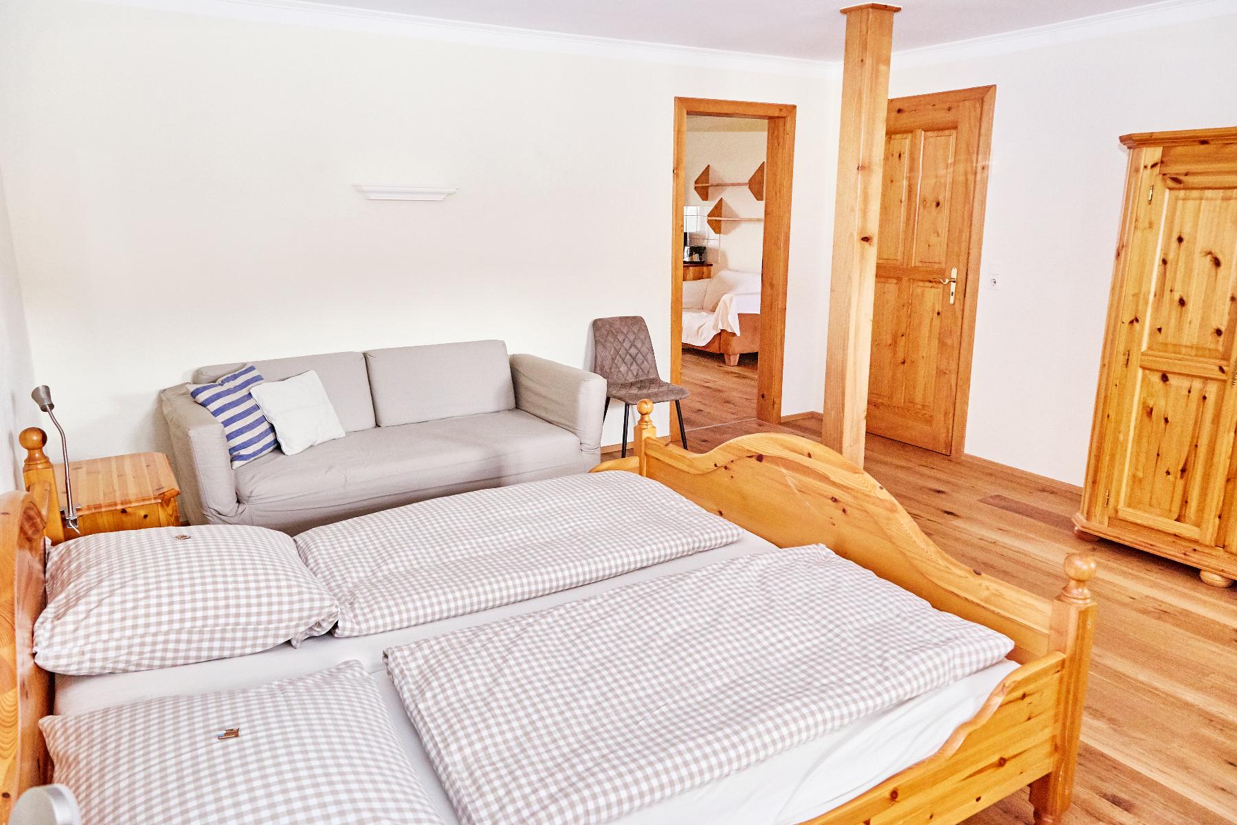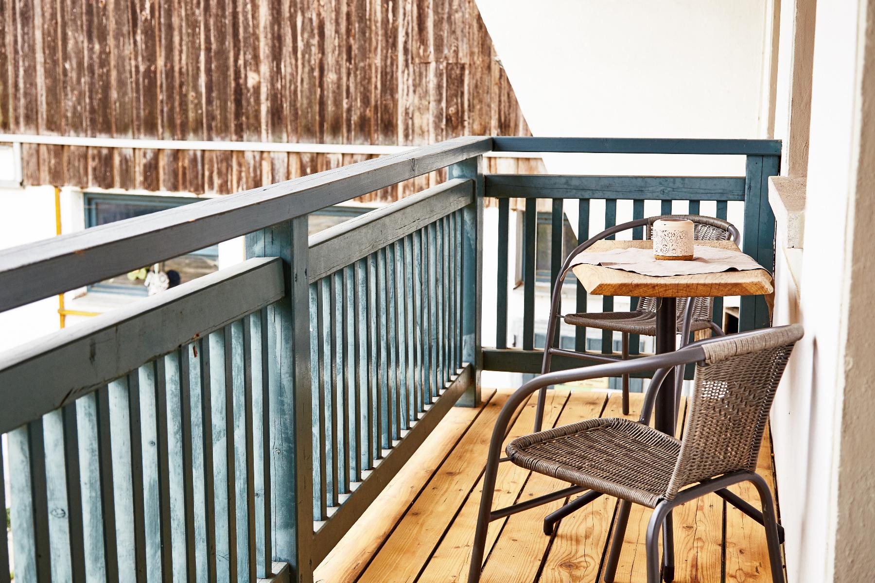 zusammen auf einem Flur mit der FeWo Emerenz Meier, ideal für Mehrgenerationenurlaub oder befreundete Familien, kleiner Balkon.