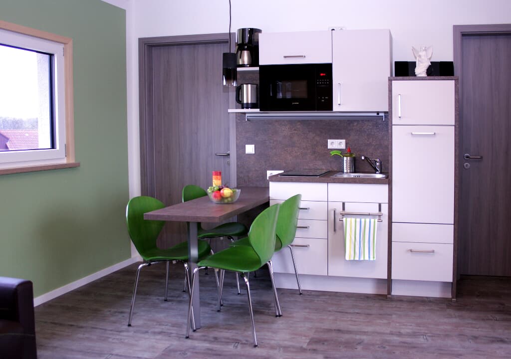 Mit unseren je ca. 44 m² großen einzeln stehenden Chalets mitten im Grünen haben wir ein Areal geschaffen, in dem Sie Auszeit nehmen können, Einblick nehmen können in ländliches Leben, aktiv sein können, eintauchen können in eine Oase für die Seele. Sie entscheiden, ob Sie für sich alleine bleiben wollen oder in Gemeinschaft mit uns und den anderen Gästen aktiv werden. In den 3 identisch aufgebauten Übernachtungschalets befindet sich jeweils ein großes Schlafzimmer für 2 Personen und ein kleineres für 2 Kinder oder einen Erwachsenen. Im Wohn/Essbereich gibt es zudem ein Schlafsofa. Eine kleine, aber komplett ausgestattete Küche inclusive Geschirrspüler und großem Kühlschrank lädt zum Kochen und Genießen ein. Im Duschraum liegen Handtücher und ein Fön für Sie bereit. Eine überdachte Terrasse lädt zum Verweilen an der frischen Luft ein. Die Terrassen sind von den anderen Chalets aus nicht einsehbar. Areal und Chalets sind ebenerdig angelegt und auch für ältere Menschen gut begehbar. Selbstverständlich verfügen die Chalets über WLAN. Wenn sie möchten bieten wir Ihnen morgens ein Frühstück in unserem Seminar-Chalet mit Gemeinschaftsraum, großer Terrasse und Profiküche.