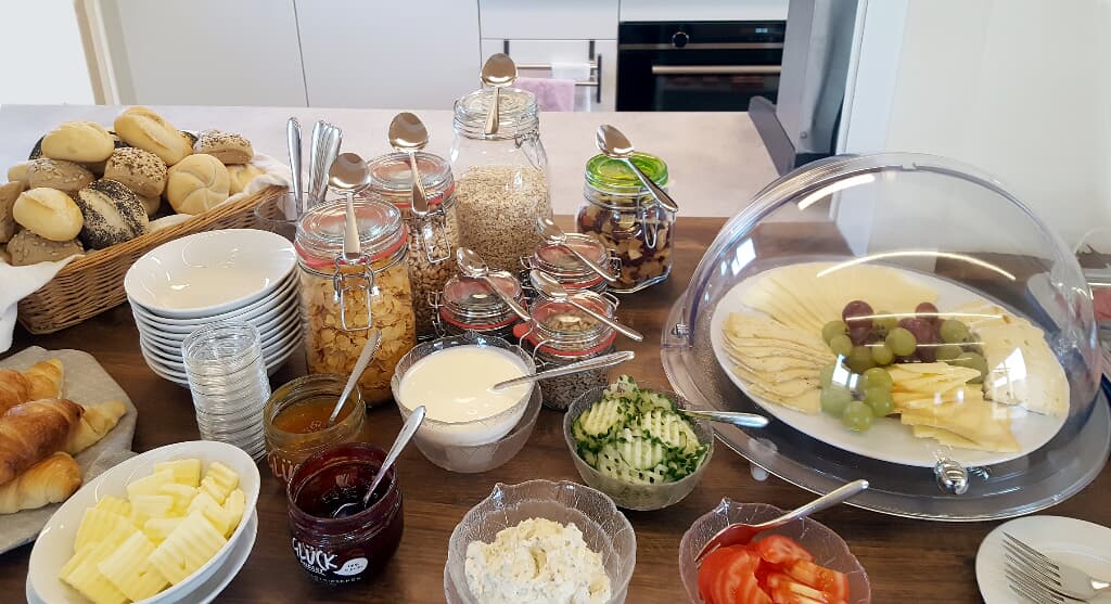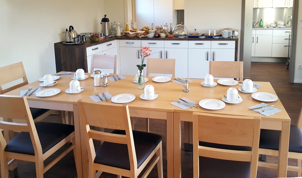 Frühstück vor Ort zubuchbar: 10;- € pro Person, Kinder bis 3 Jahre frei, bis 10 Jahre 4,- €, bis 14 Jahre 8,- €.