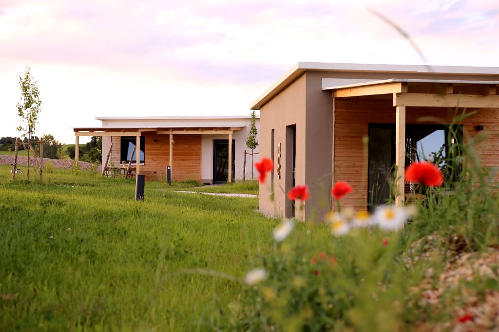 Mit unseren je ca. 44 m² großen einzeln stehenden Chalets mitten im Grünen haben wir ein Areal geschaffen, in dem Sie Auszeit nehmen können, Einblick nehmen können in ländliches Leben, aktiv sein können, eintauchen können in eine Oase für die Seele. Sie entscheiden, ob Sie für sich alleine bleiben wollen oder in Gemeinschaft mit uns und den anderen Gästen aktiv werden.