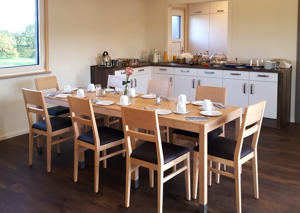 Frühstück vor Ort zubuchbar: 10;- € pro Person, Kinder bis 3 Jahre frei, bis 10 Jahre 4,- €, bis 14 Jahre 8,- €.