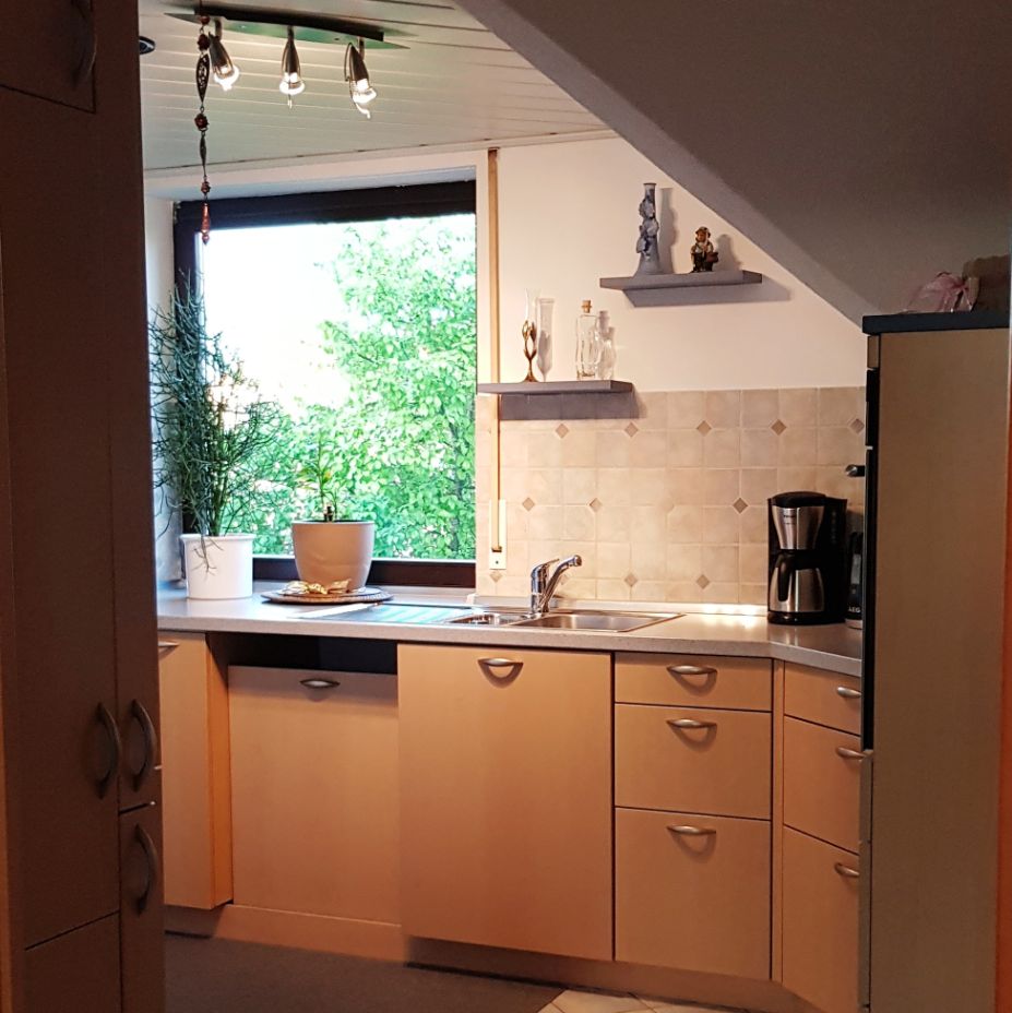 Die großzügige, lichtdurchflutete Dachgeschosswohnung verfügt über eine komplett ausgestattete Küche, 2 Schlafräume, Bad mit Wanne, Dusche und WC, separates WC, wischbare Böden sowie zwei große Balkone.