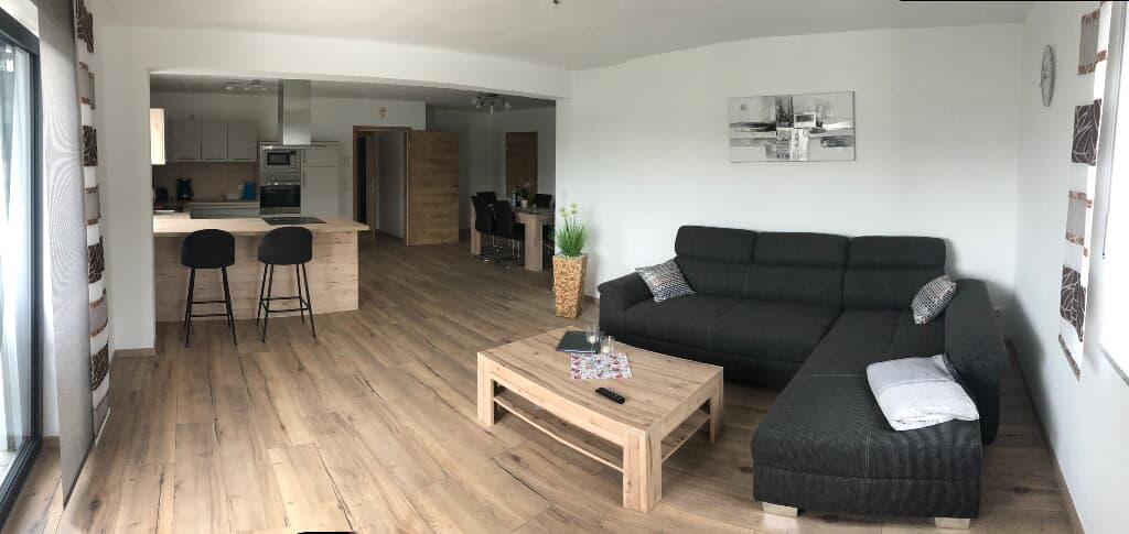 Jede Wohnung verfügt über eine große, hochwertige Küche, die mit einem Geschirrspüler, einer Mikrowelle, einem großen Kühlschrank, einem Wasserkocher, einer Kaffeemaschine sowie Besteck, Geschirr, Gläser und Töpfen ausgestattet ist. Der große Wohnbereich besteht aus einem Essbereich und einer gemütlichen Couchlandschaft mit einem Flachbild-Sat-TV.
