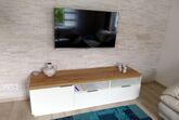Sie besteht aus Wohnzimmer mit offener Küche, Essbereich und Wohnbereich. Die separate Ferienwohnung bietet Ihnen neben einem Schlafzimmer in dem auch ein Reisebabybett aufgestellt werden kann, ein Bad mit Dusche, WC und Waschbecken mit Spiegelschrank das während Ihres Aufenthaltes nur Sie benutzen.