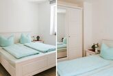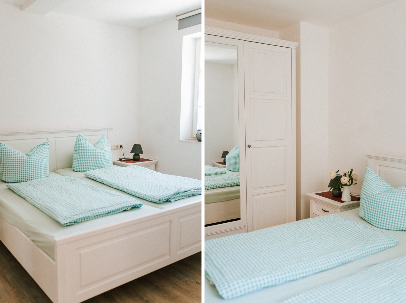 Die gemütliche Ferienwohnung ist ca. 50 qm groß. Es gibt ein Schlafzimmer mit einem Doppelbett mit getrennten Matratzen. Die Betten sind bei Ihrer Anreise bereits bezogen.