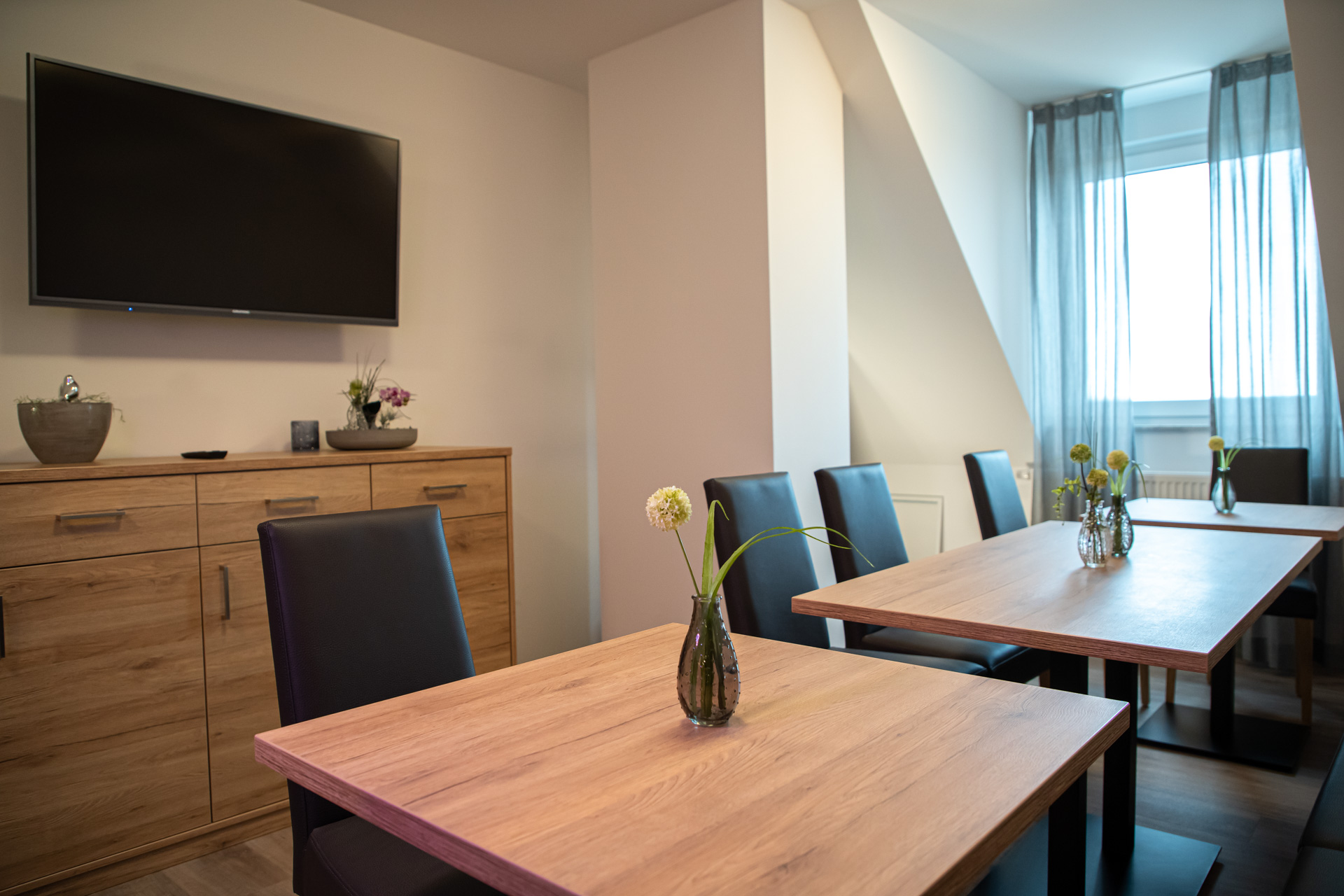 Das moderene Doppelzimmer im Dachgeschoss ist ausgestattet mit einem Doppel-Boxpringbett. Das Bett kann getrennt werden zu zwei Einzelbetten. Machen Sie es sich gemütlich auf der Sitzgelegenheit mit TV. Das Badezimmer verfügt über Dusche, WC und Föhn. Parkplätze sind am Hof vorhanden, WLAN ist kostenlos. Der Aufenthaltsraum ist für alle Gäste zugänglich. Dort gibt es eine Kochgelegenheit und einen Fernseher.