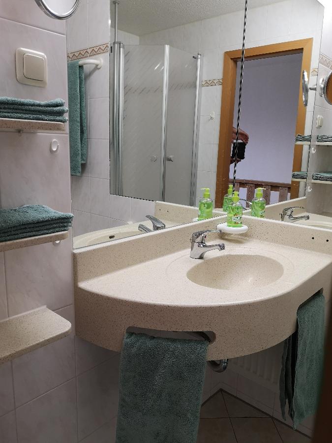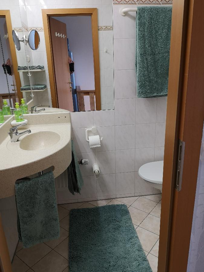 Auch das Badezimmer mit Dusche und WC lässt keine Wünsche offen. Gerne stellen wir Ihnen Haartrockner, Schminkspiegel, Bade- und Handtücher sowie Seife, Duschgel und Toilettenpapier bereit. Die Garderobe im Eingangsbereich bietet ausreichend Platz für Ihr Sportequipment (Ski, Schnee- und Wanderschuhe, etc.).